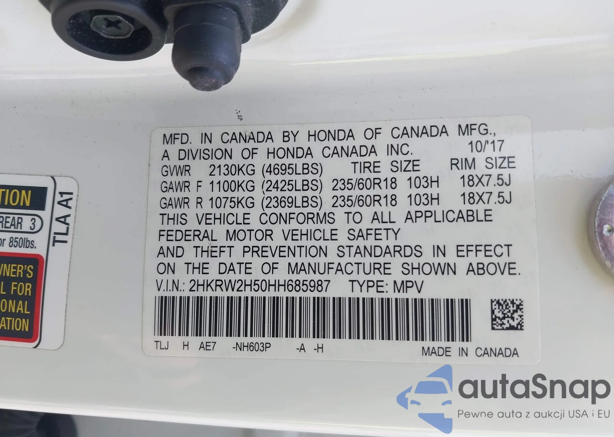 • VIN 2HKRW2H50HH685987