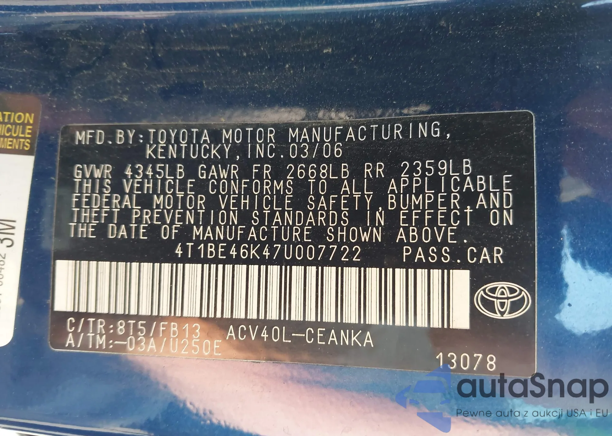 • VIN 4T1BE46K47U007722