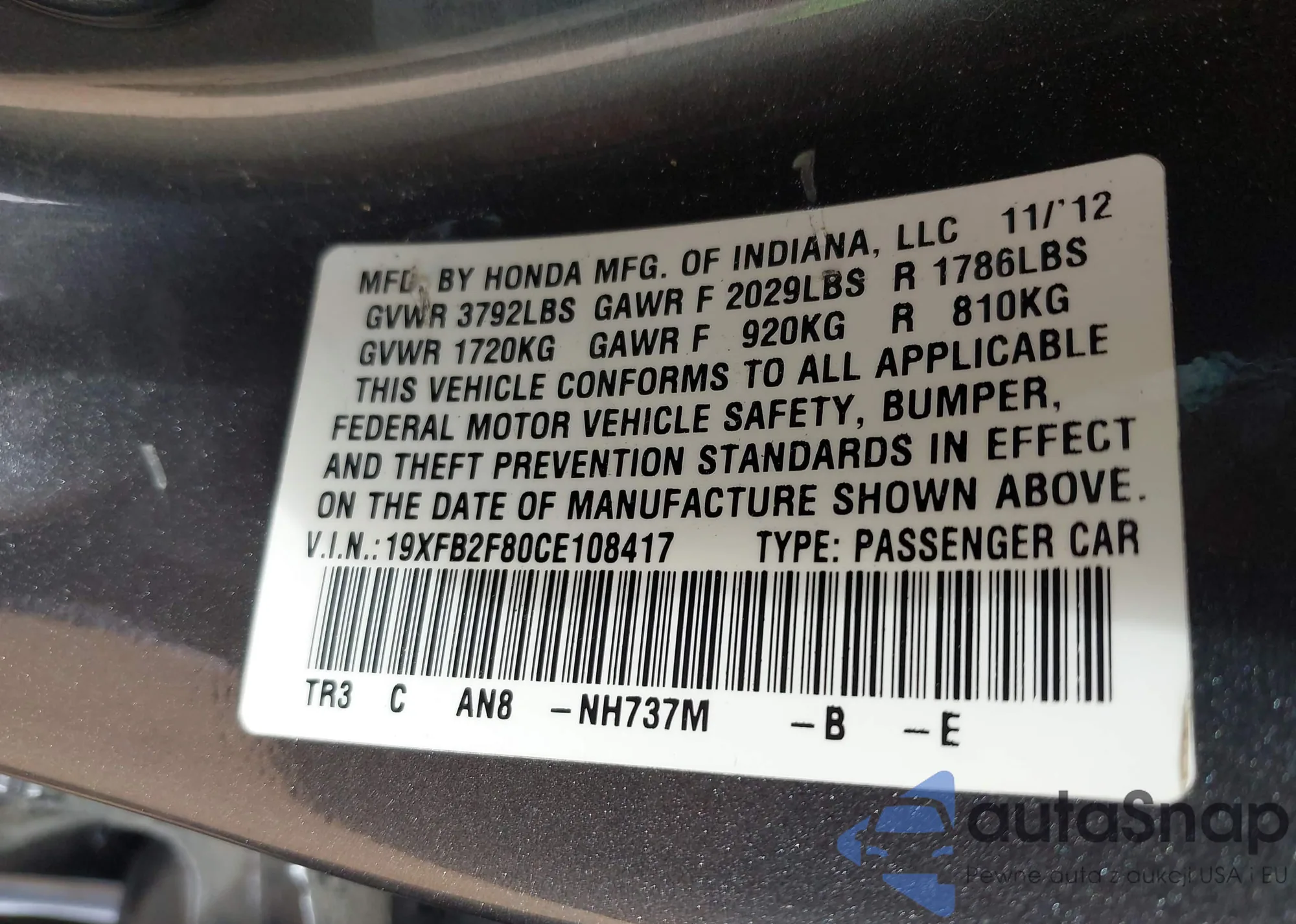 • VIN 3CZRZ1H58RM730682