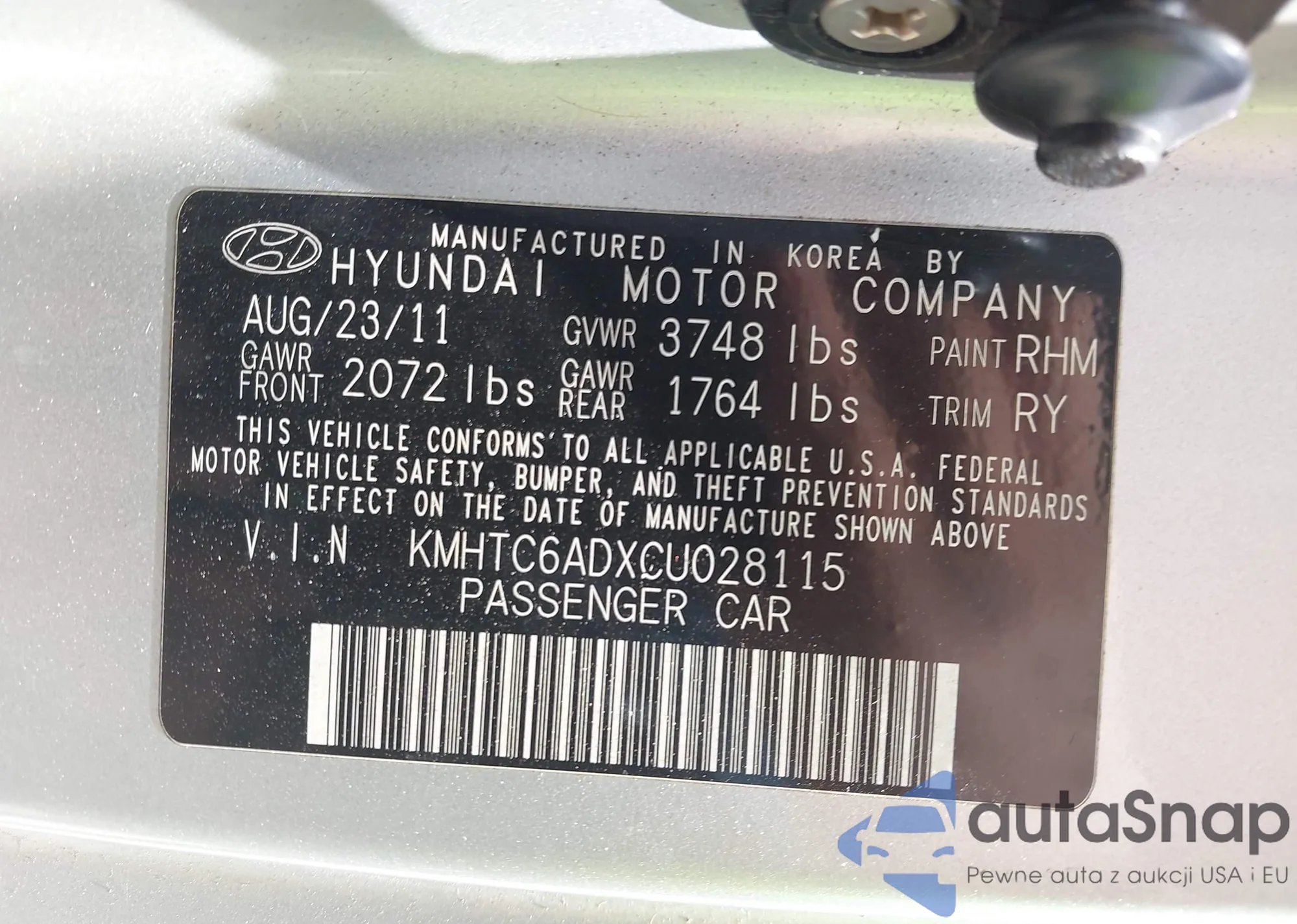 • VIN KMHTC6ADXCU028115