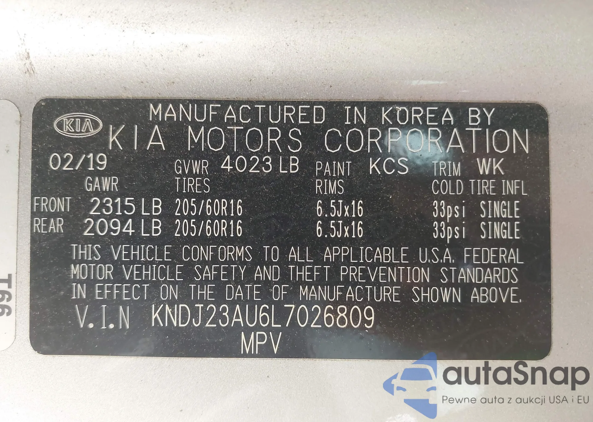 • VIN 2T3P1RFV0KC007727