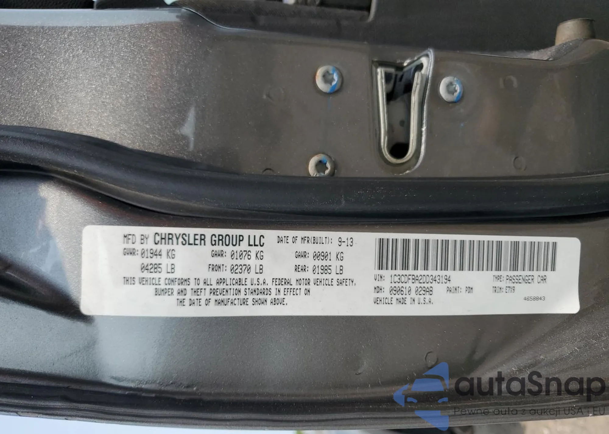 • VIN 1C3CDFBA2DD343194