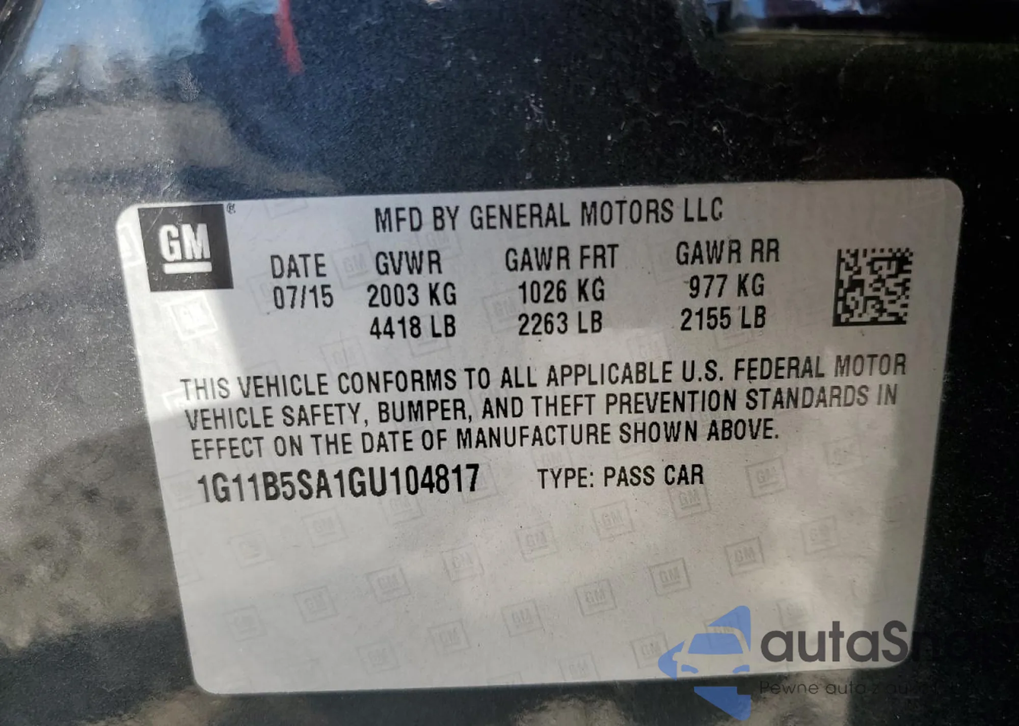 • VIN KL7CJRSB2JB714146