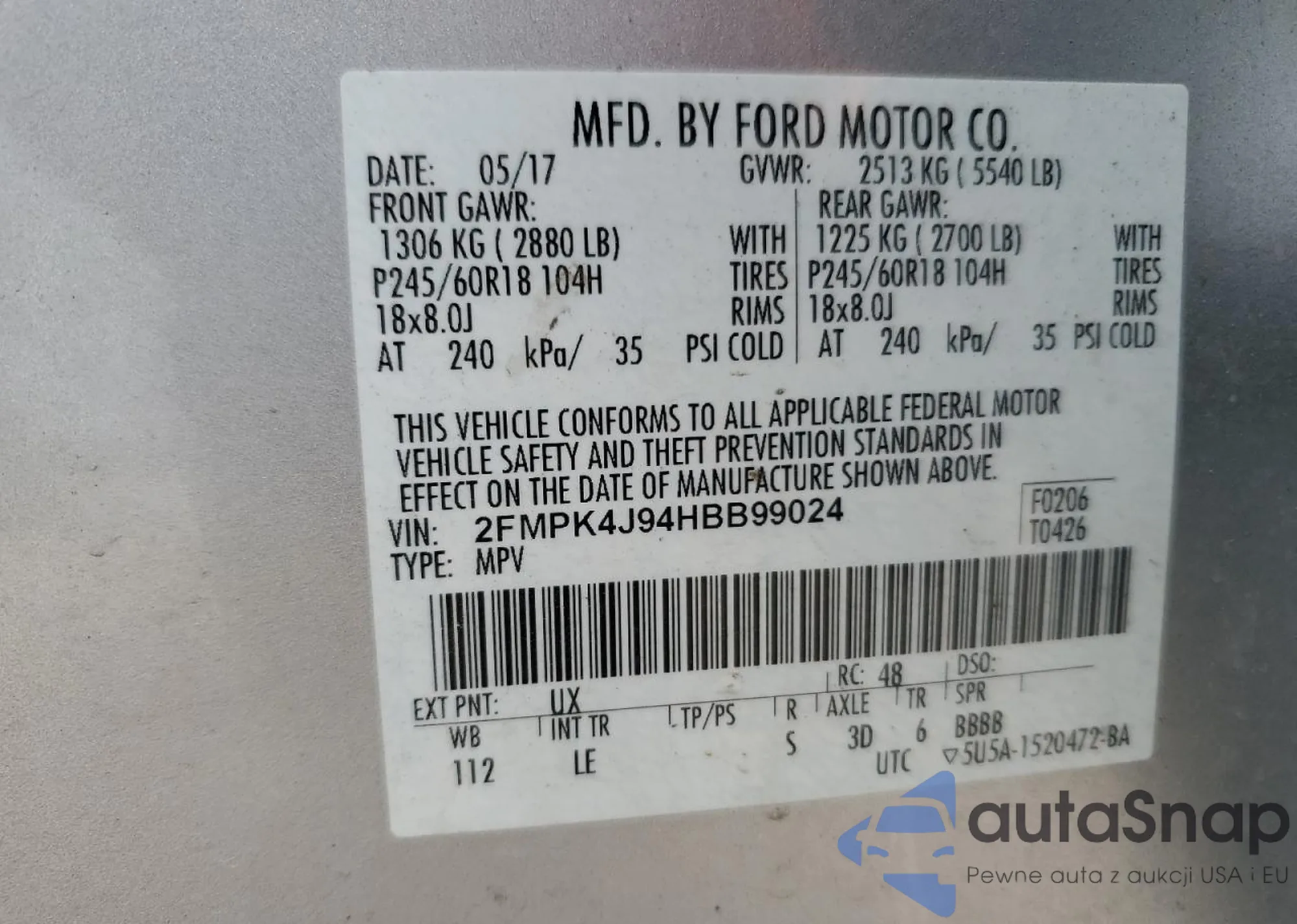 • VIN 2FMPK4J94HBB99024