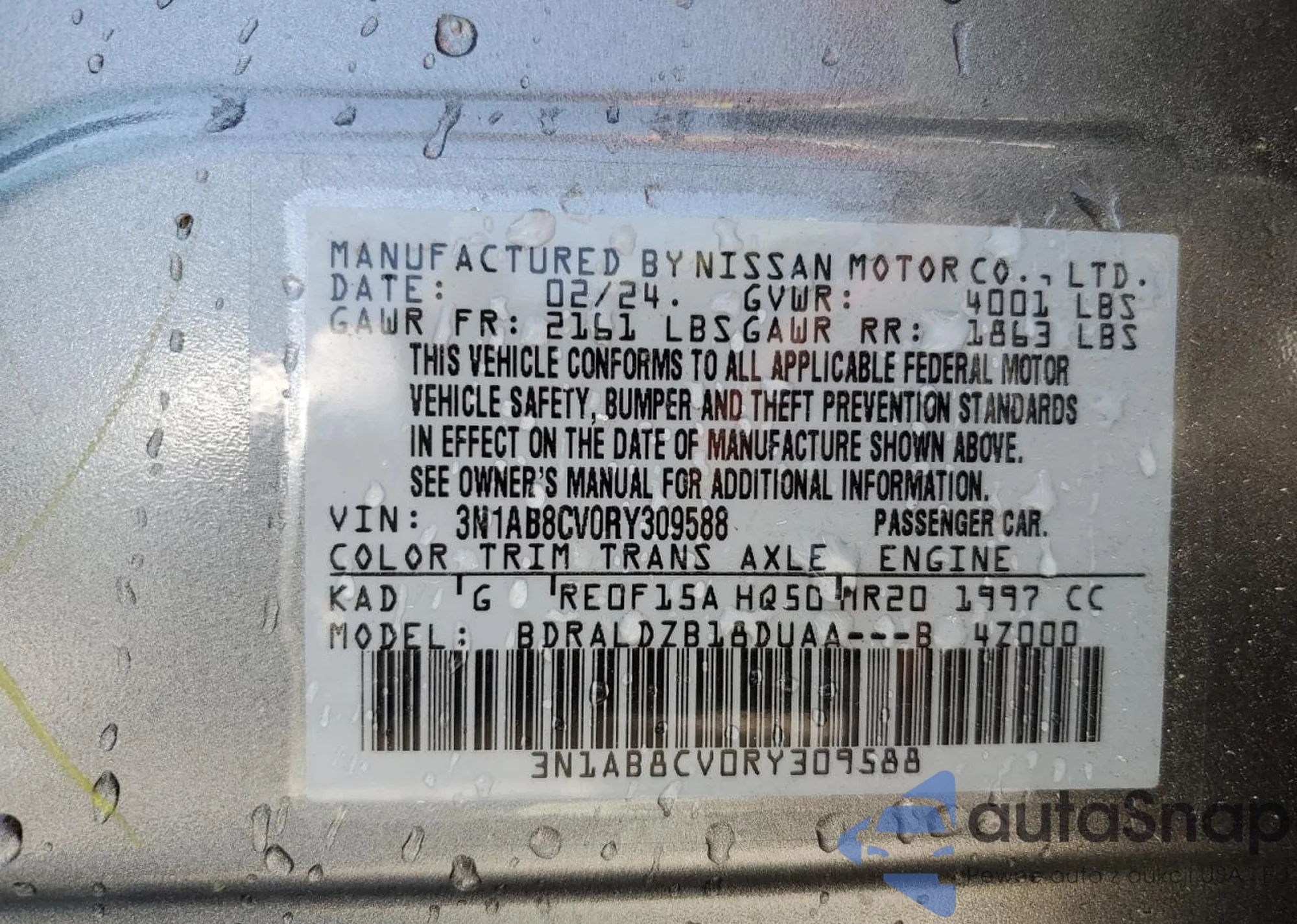 LOT: 60723305 VIN: 1N4AL3APXFC282069