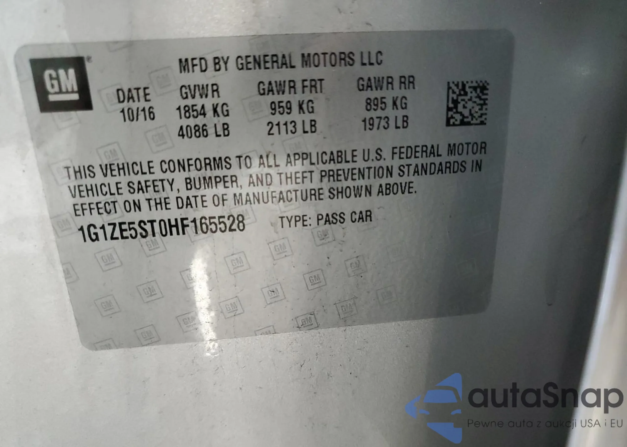 • VIN 1G1ZE5ST0HF165528