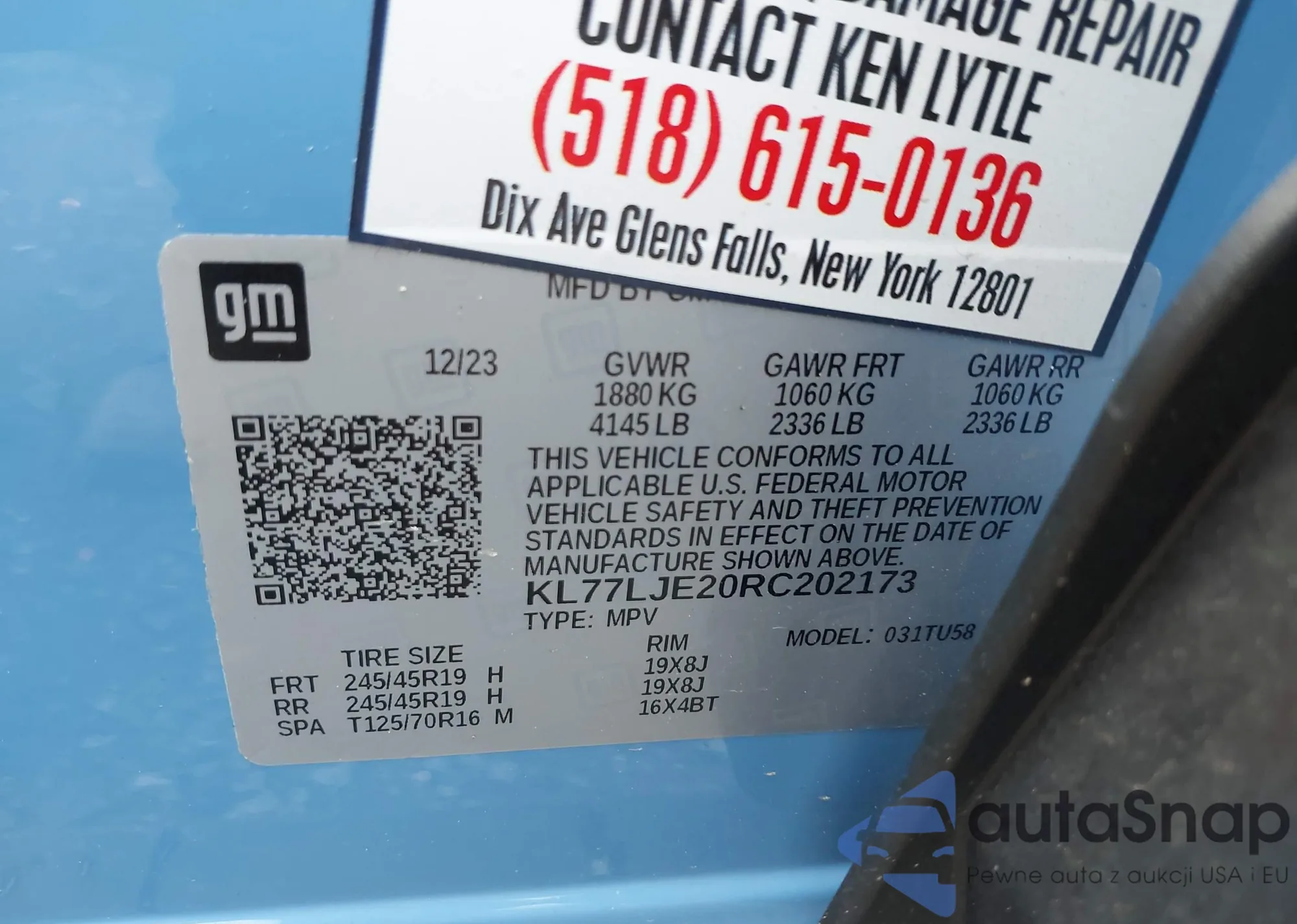LOT: 42196758 VIN: KL77LJE20RC202173