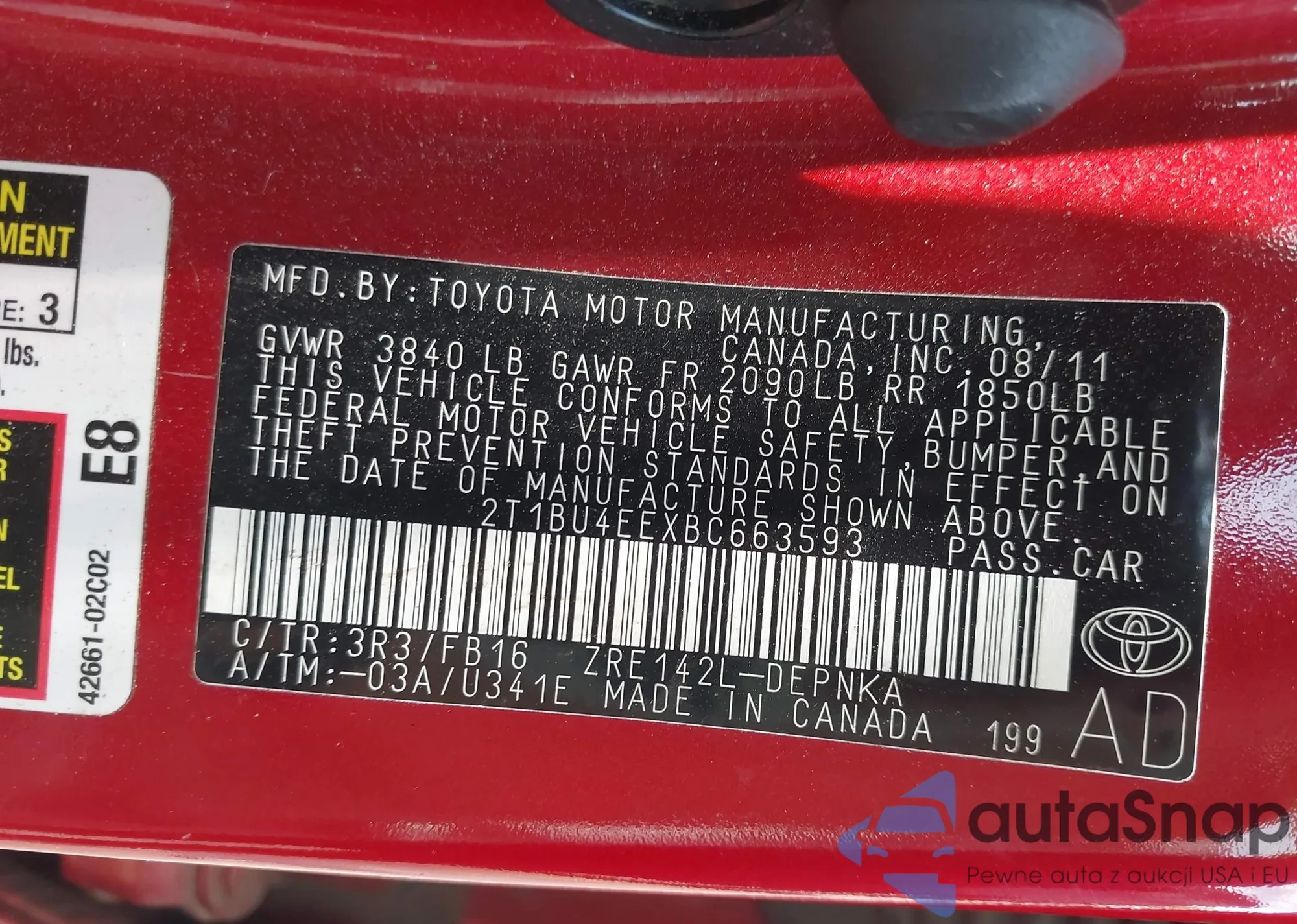 LOT: 42030674 VIN: 1N4AL3AP8FC233789