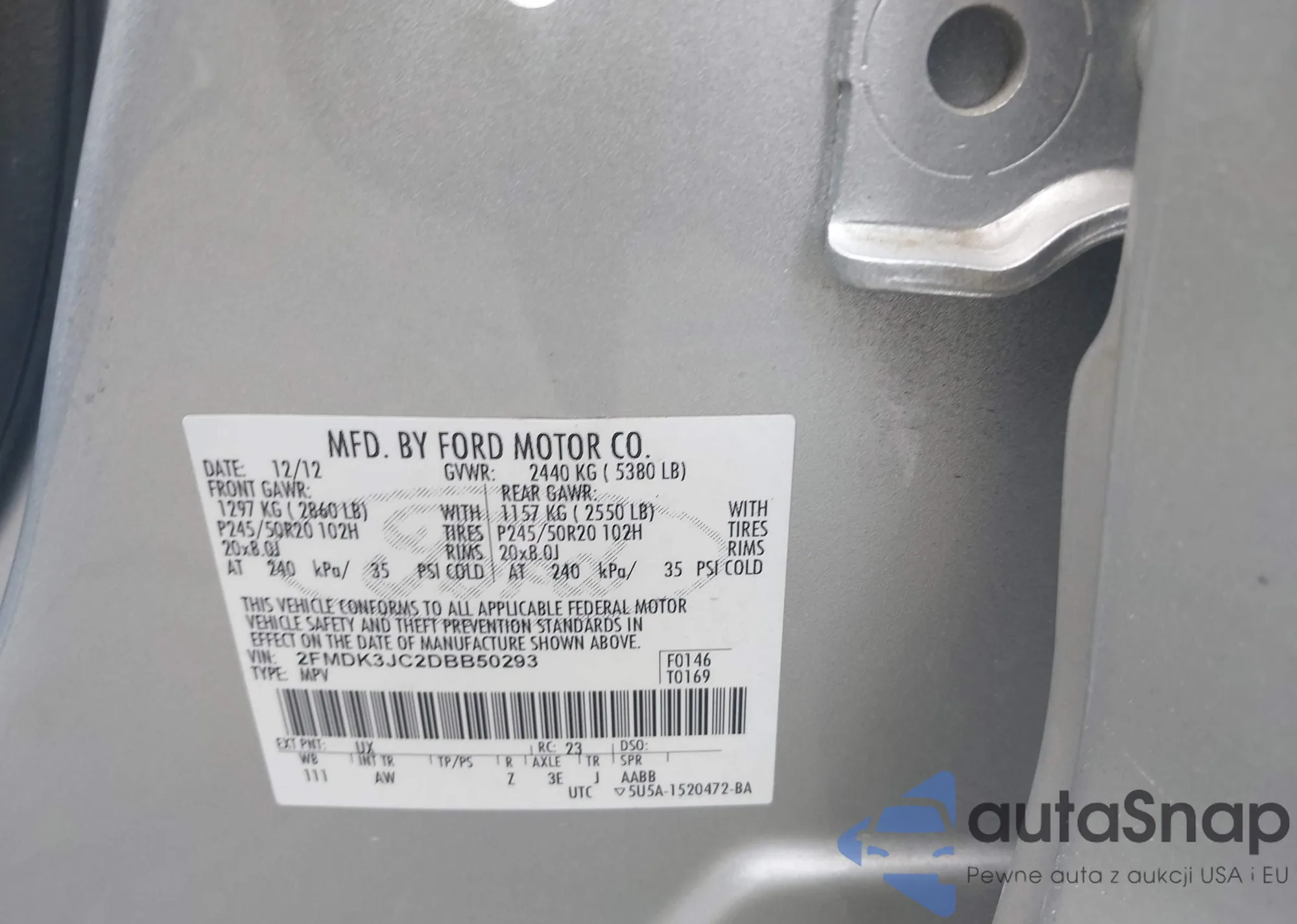 • VIN 2FMDK3JC2DBB50293