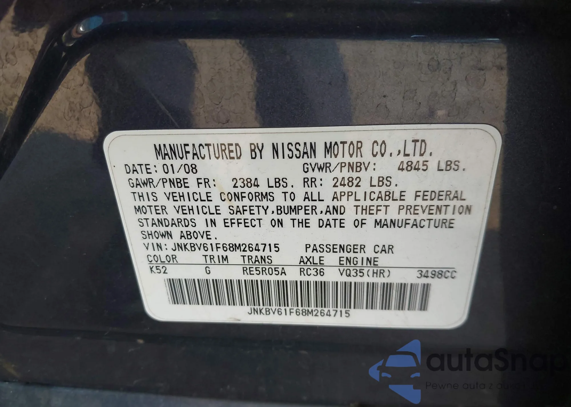 LOT: 42327393 VIN: JNKBV61F68M264715