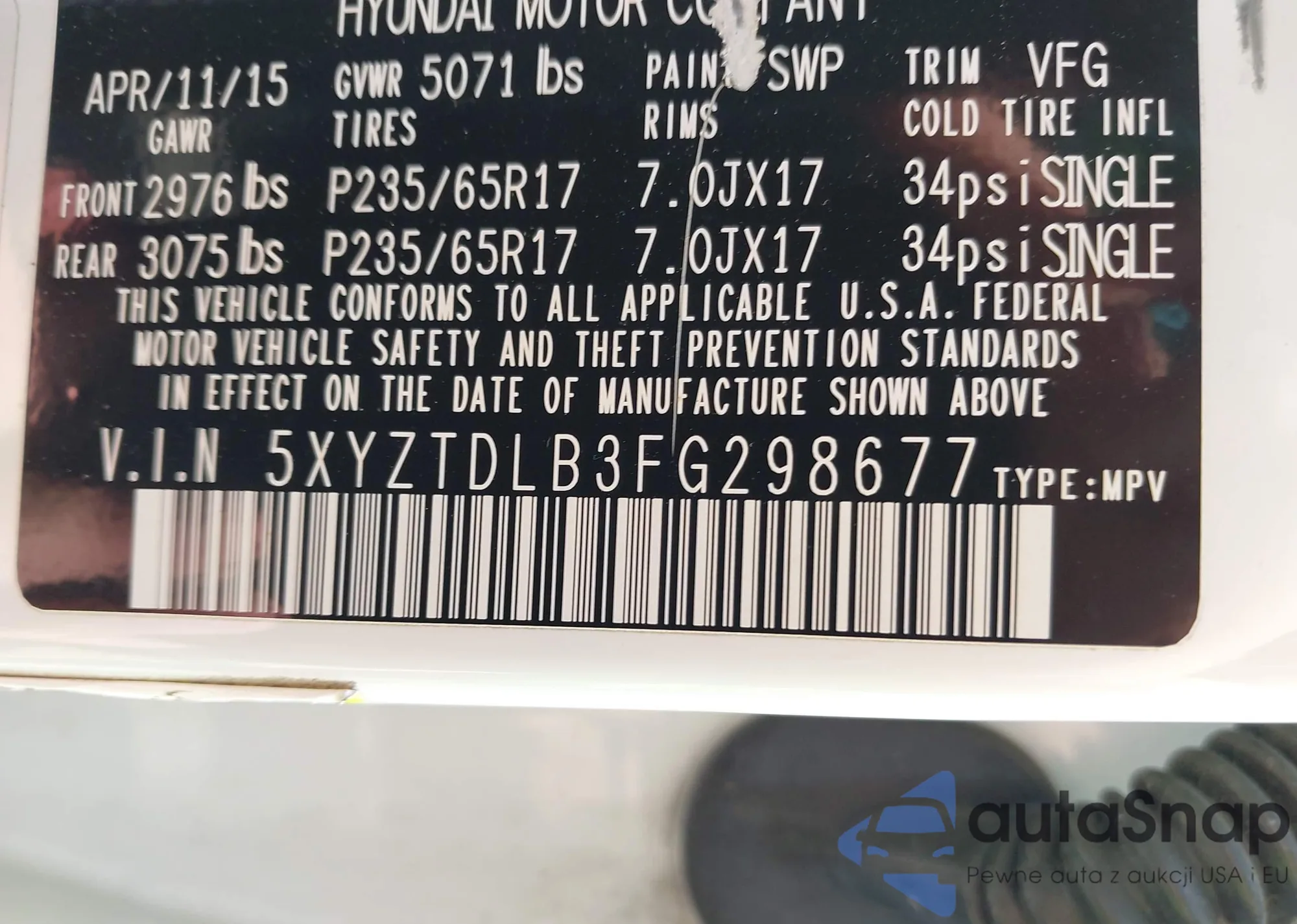 • VIN 5XYZTDLB3FG298677