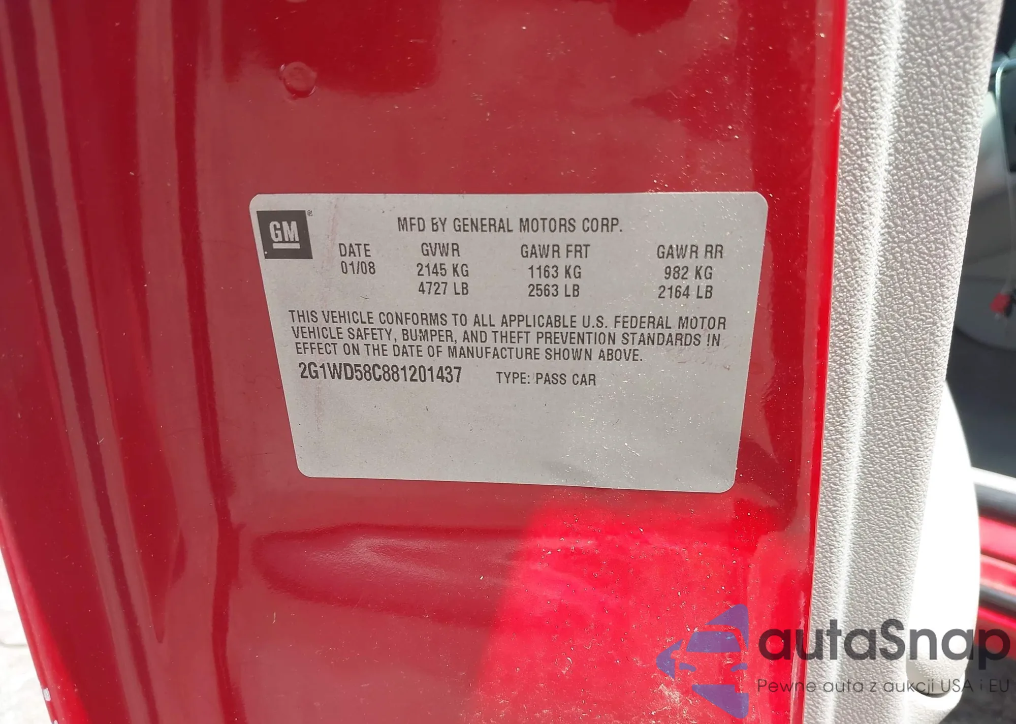 LOT: 42472507 VIN: 2G1WD58C881201437