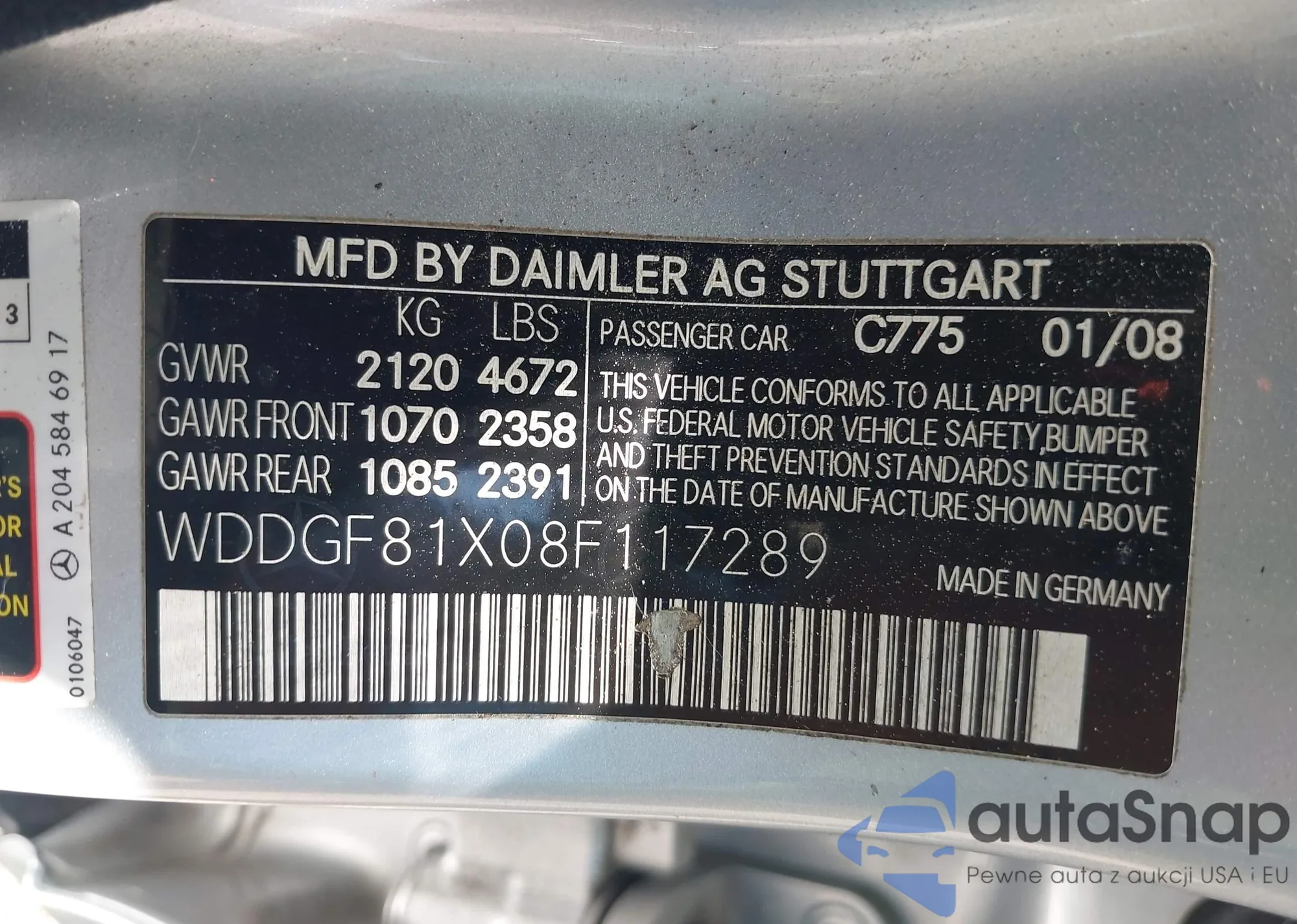 LOT: 42564147 VIN: WDDGF81X08F117289