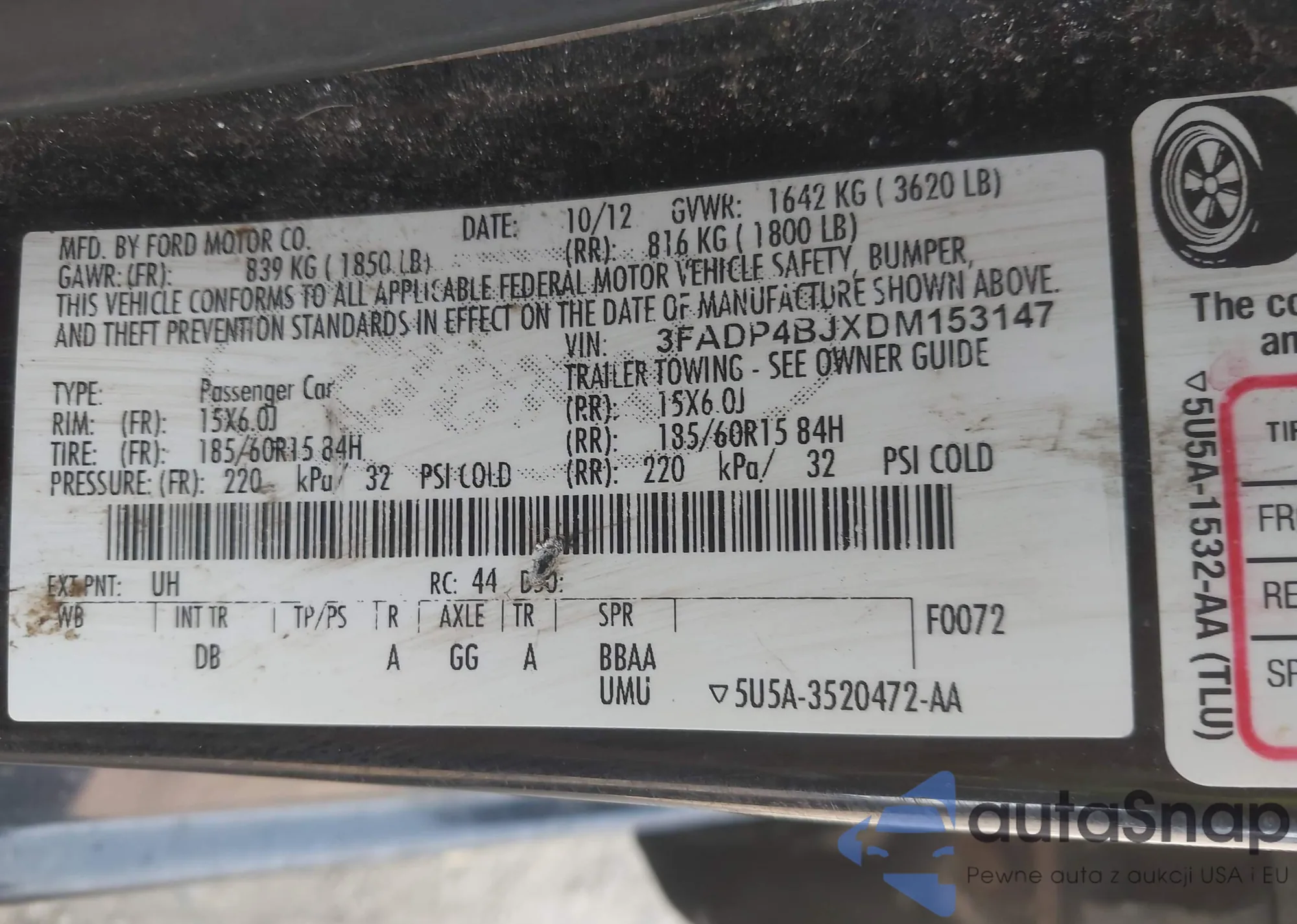 • VIN 3FADP4BJXDM153147