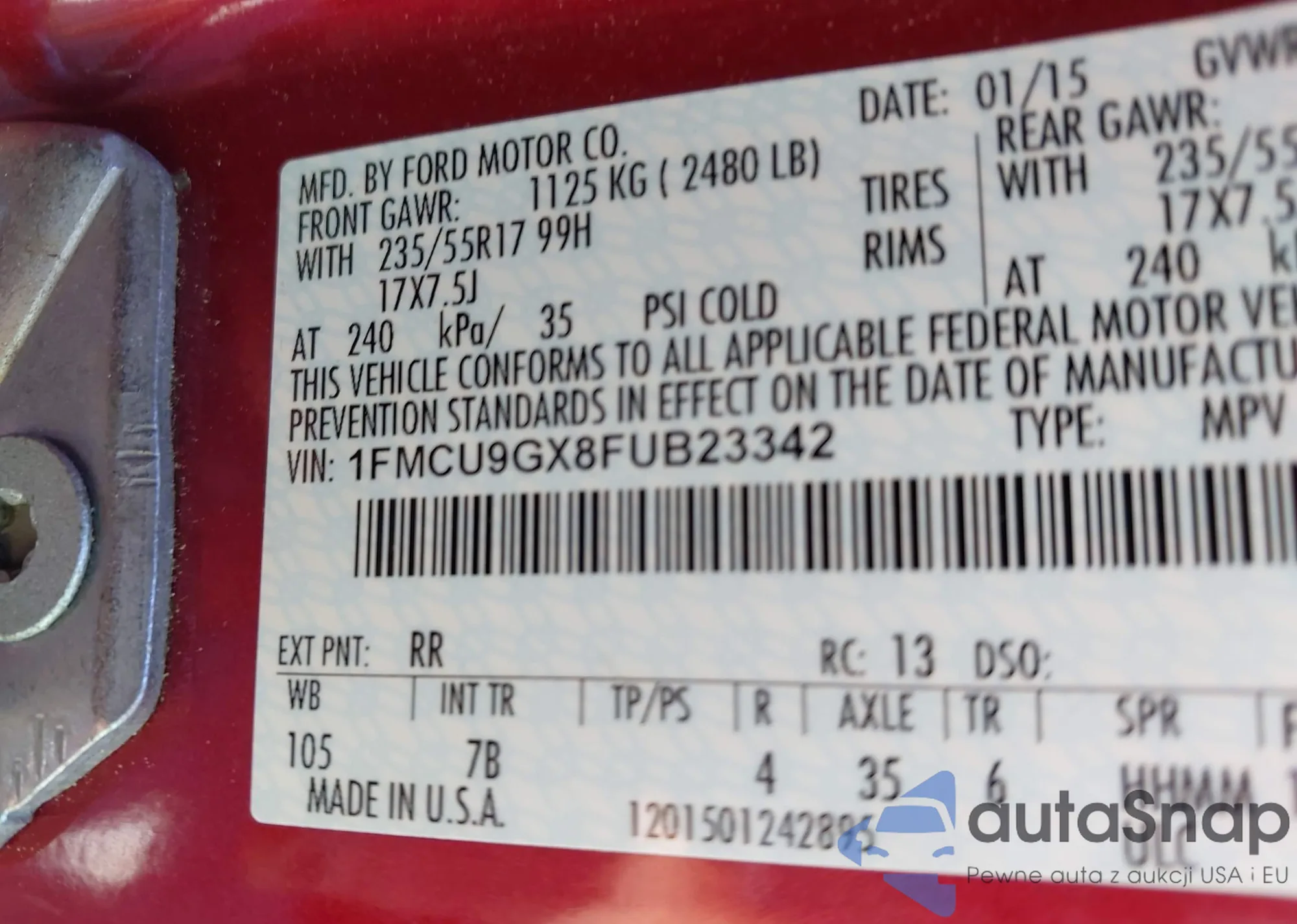 • VIN 1FMCU9GX8FUB23342
