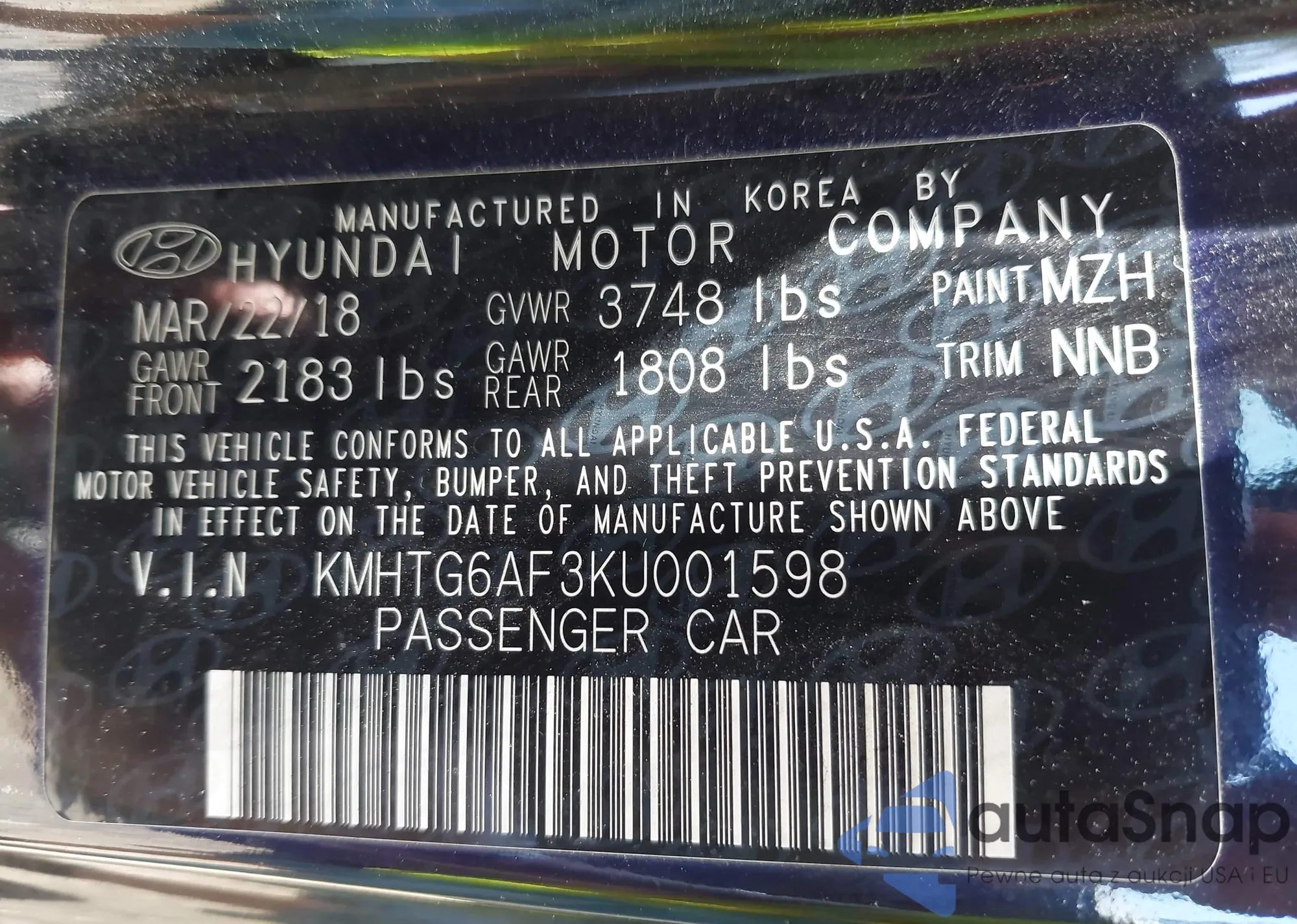 • VIN KMHTG6AF3KU001598