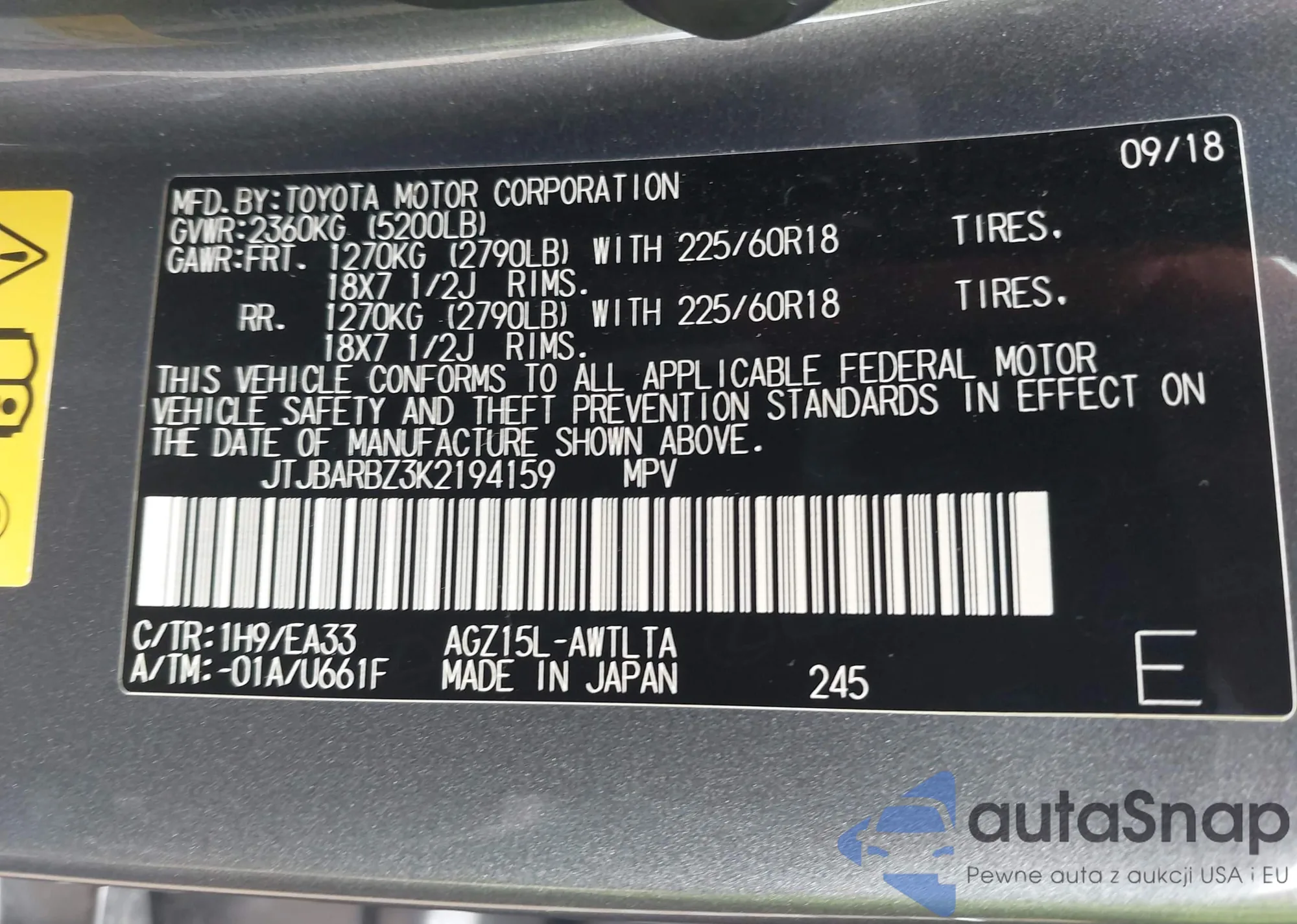 LOT: 41965369 VIN: JTJBARBZ3K2194159