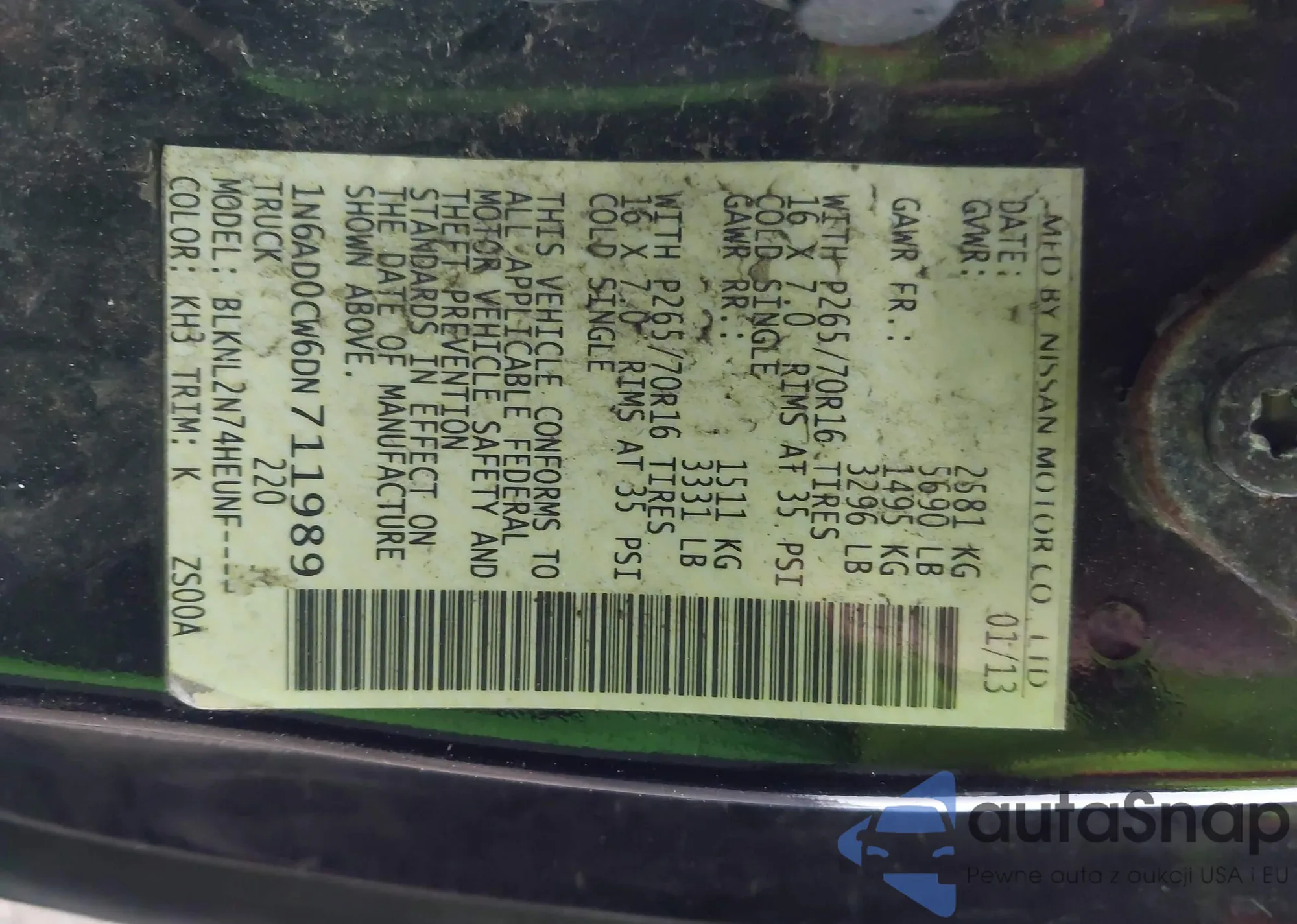 • VIN 1N6AD0CW6DN711989