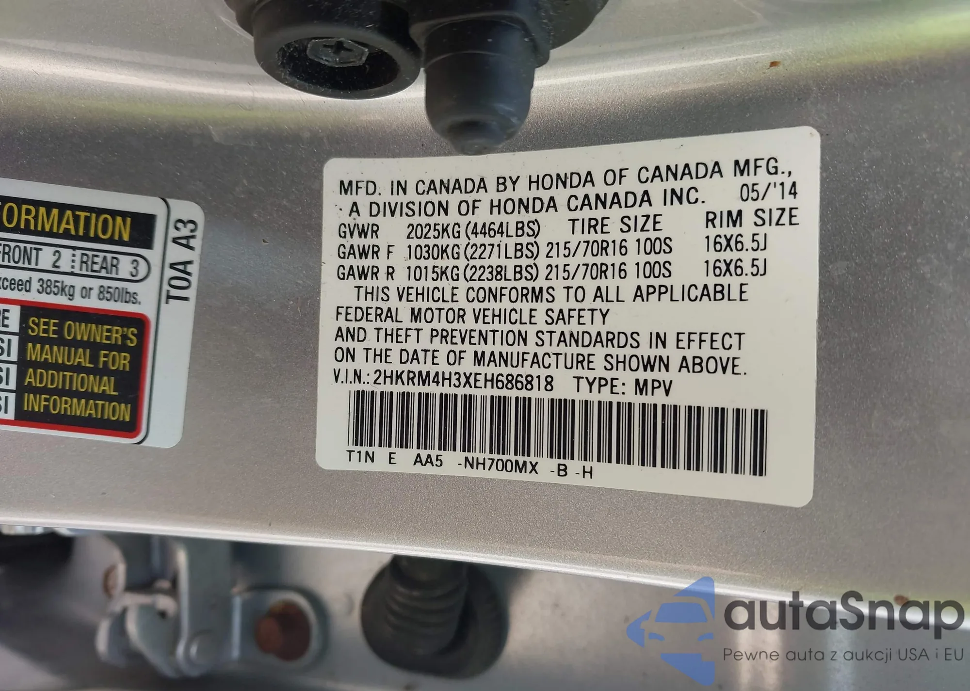 • VIN 2HKRM4H3XEH686818