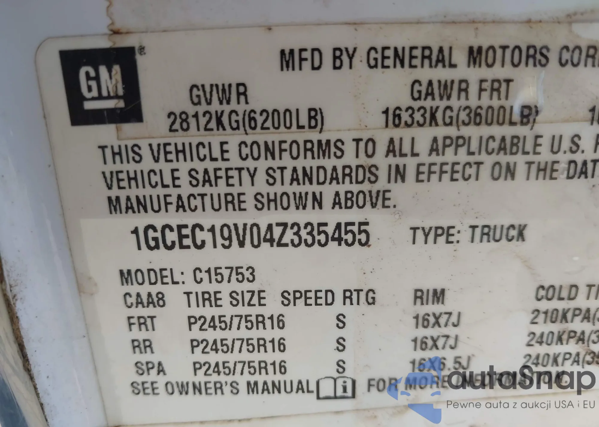 LOT: 42307867 VIN: 1GCEC19V04Z335455