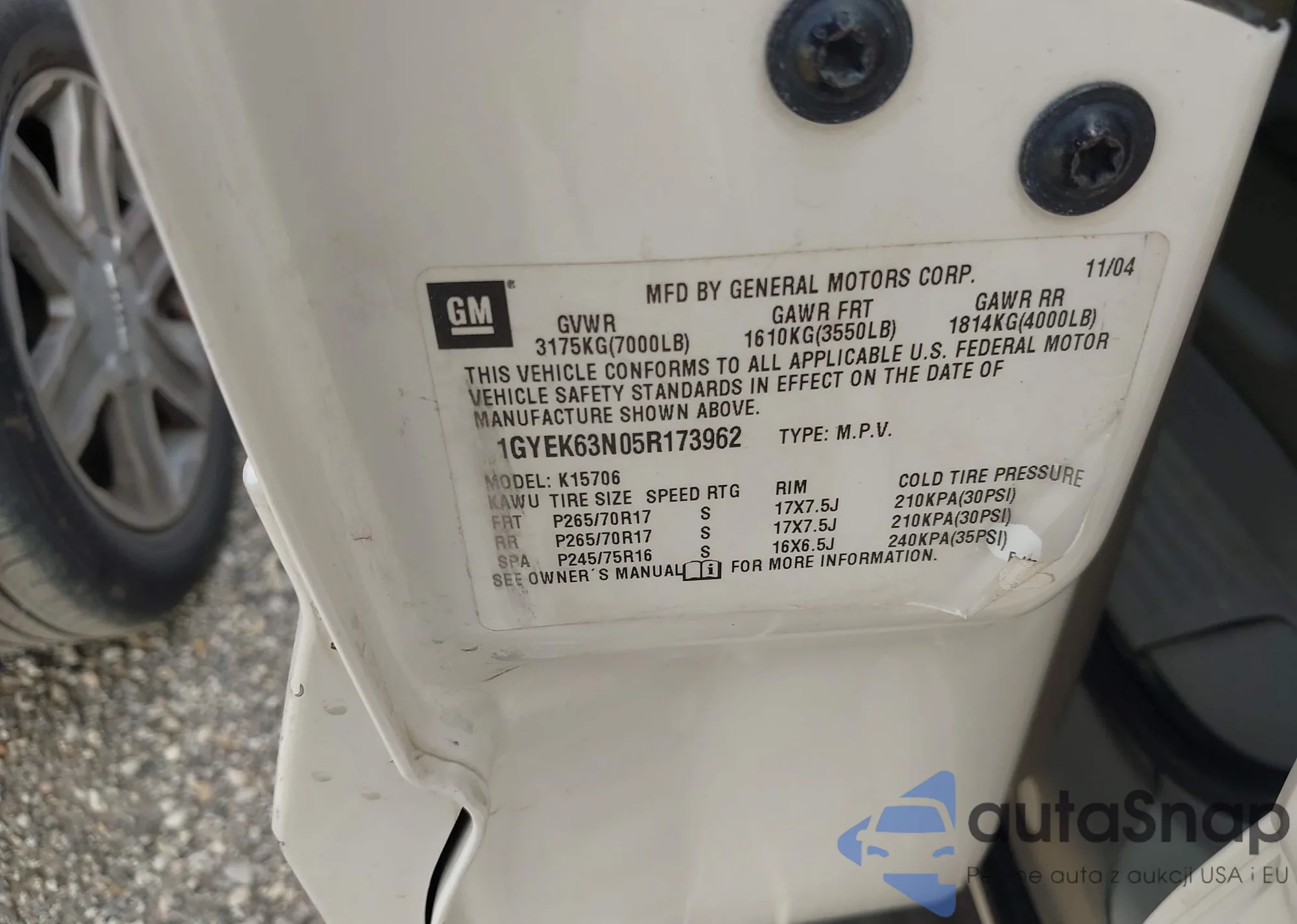 LOT: 42543163 VIN: 1GYEK63N05R173962