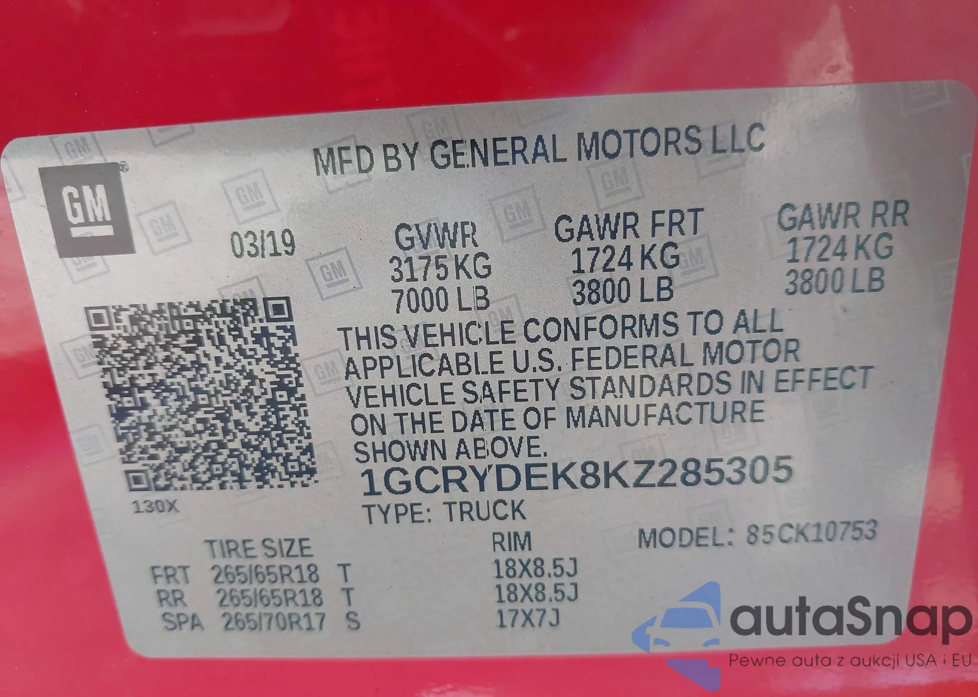 LOT: 42263895 VIN: 1GCRYDEK8KZ285305