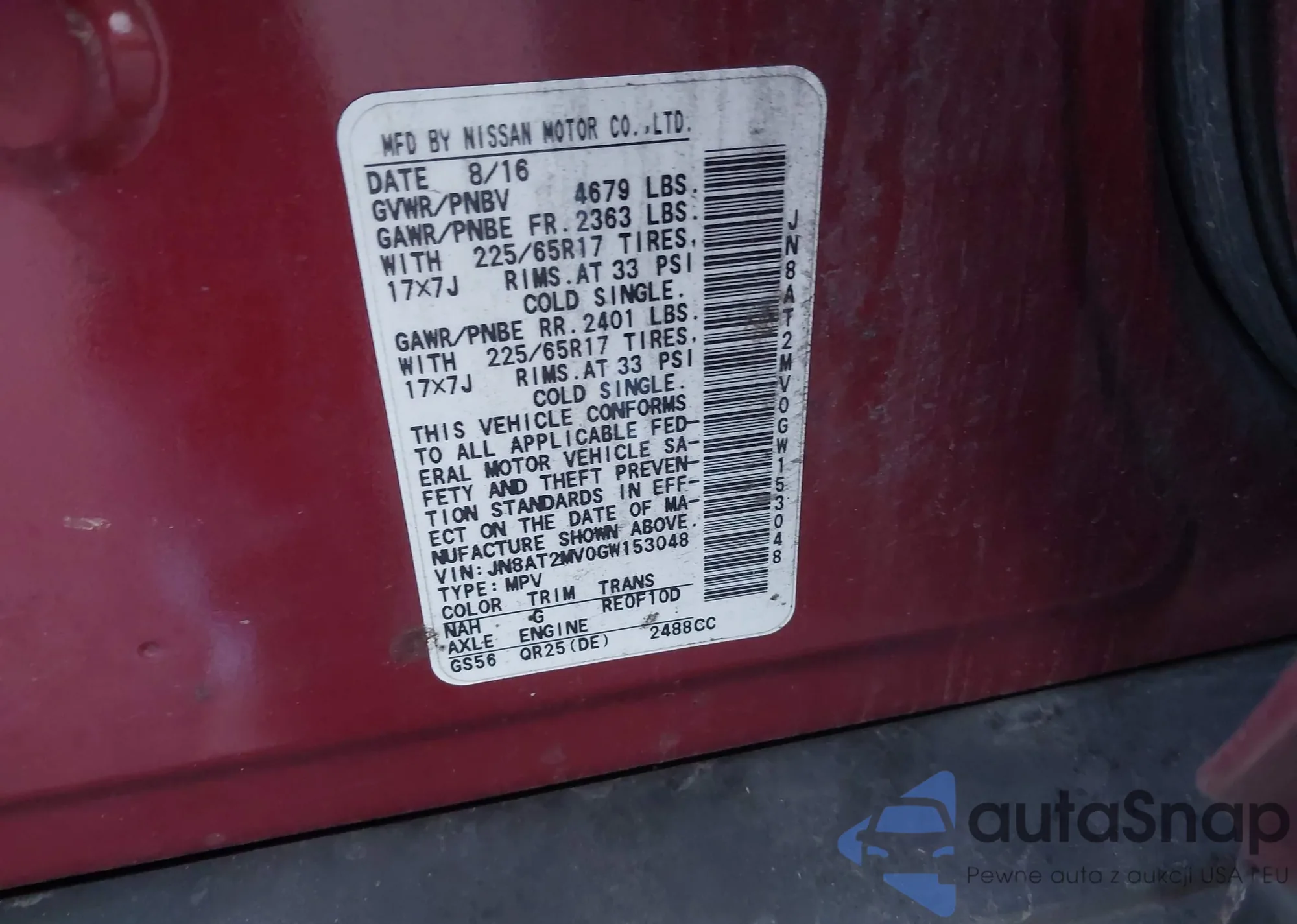 LOT: 41375765 VIN: JN8AT2MV0GW153048