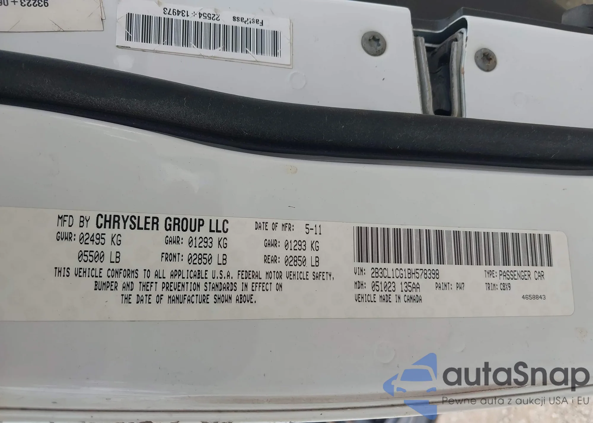 • VIN 2B3CL1CG1BH578398