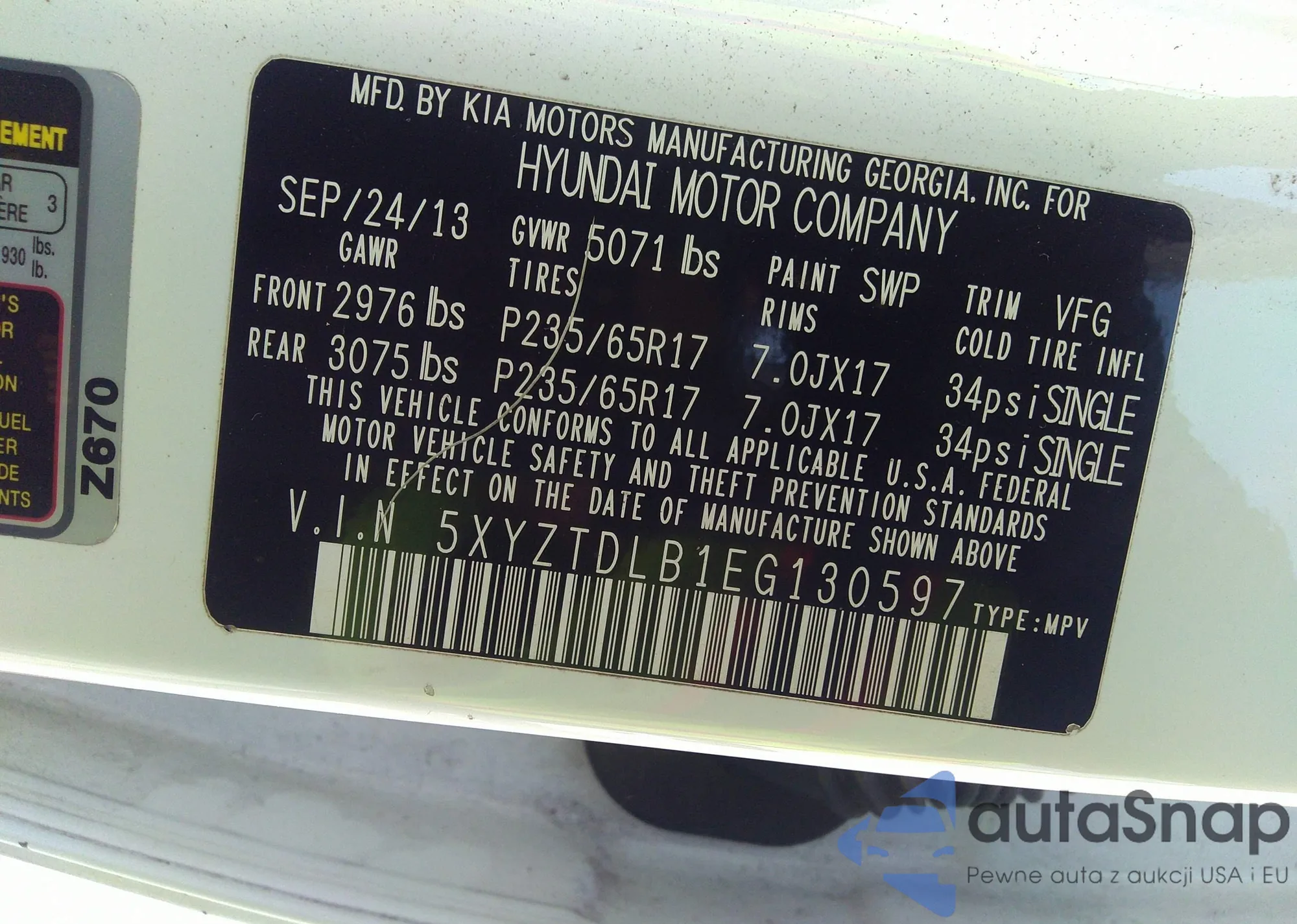 • VIN 5XYZTDLB1EG130597