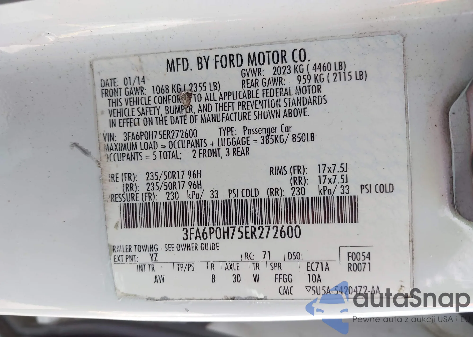 • VIN 3FA6P0H75ER272600
