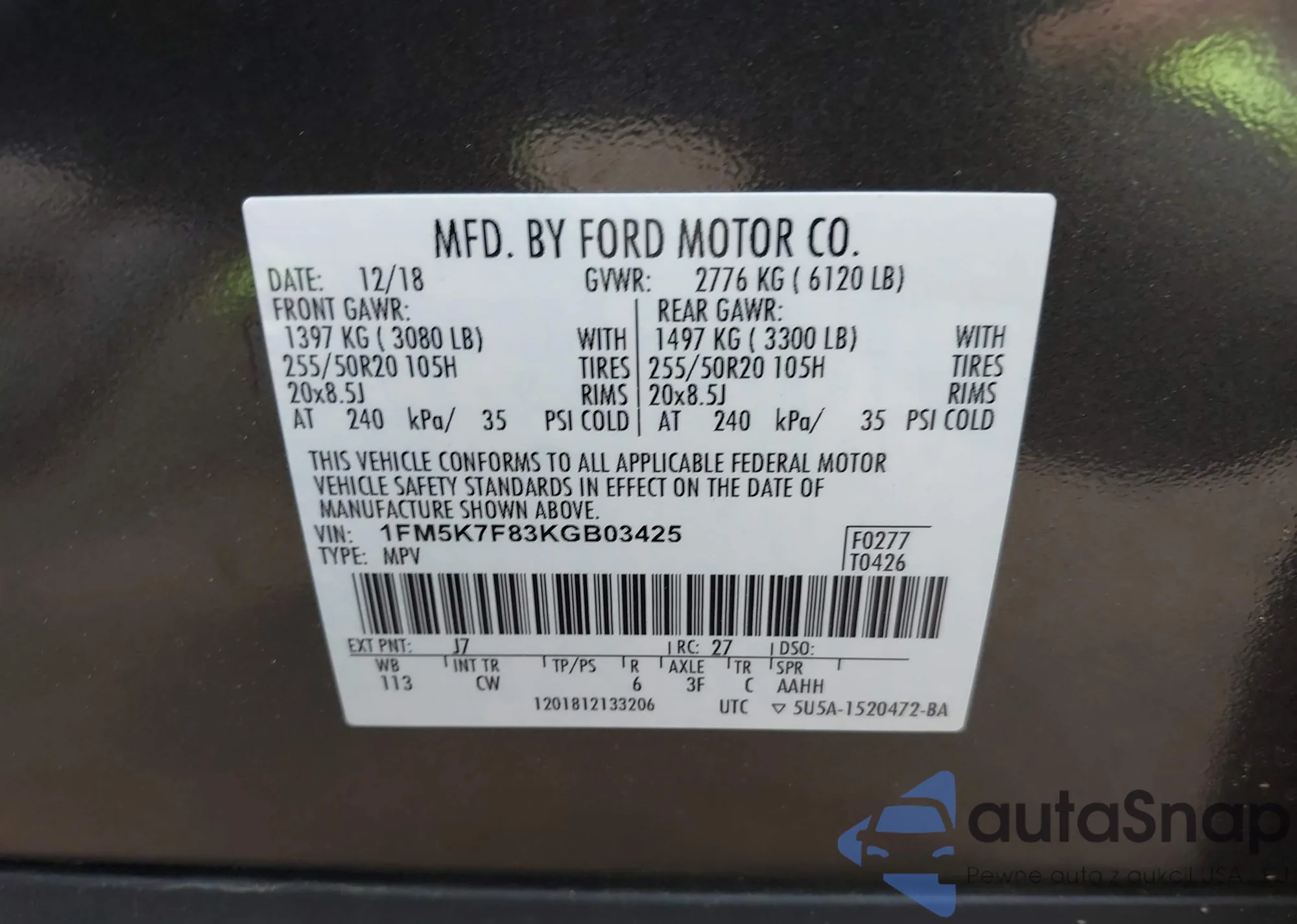 LOT: 42201629 VIN: 1G1FY6S08P4148881