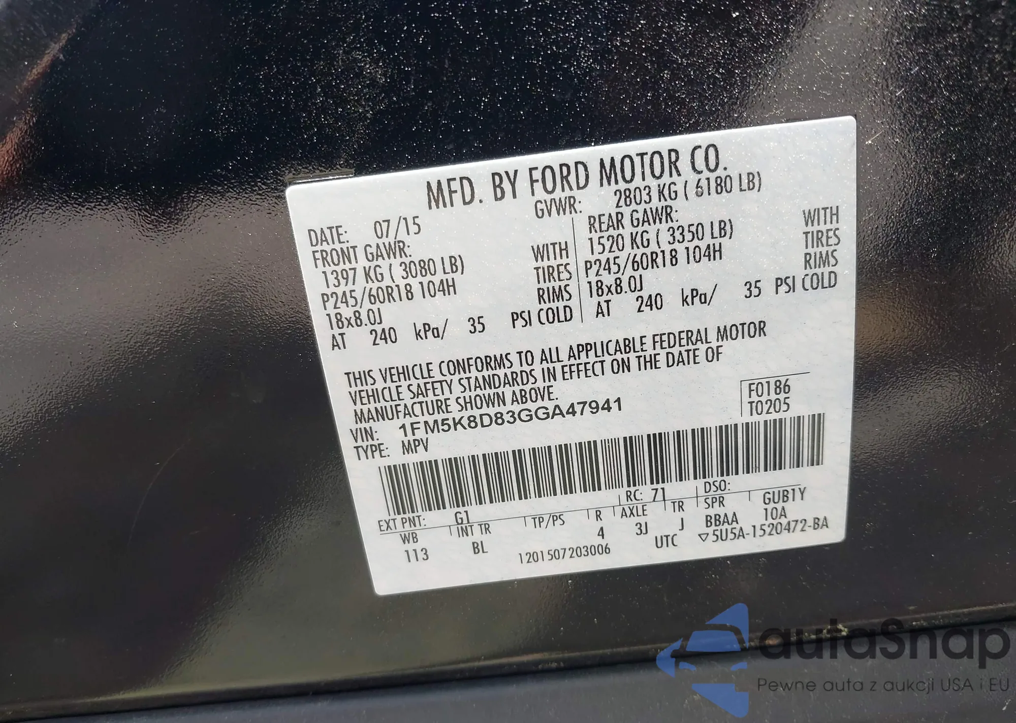 • VIN 1FM5K8D83GGA47941
