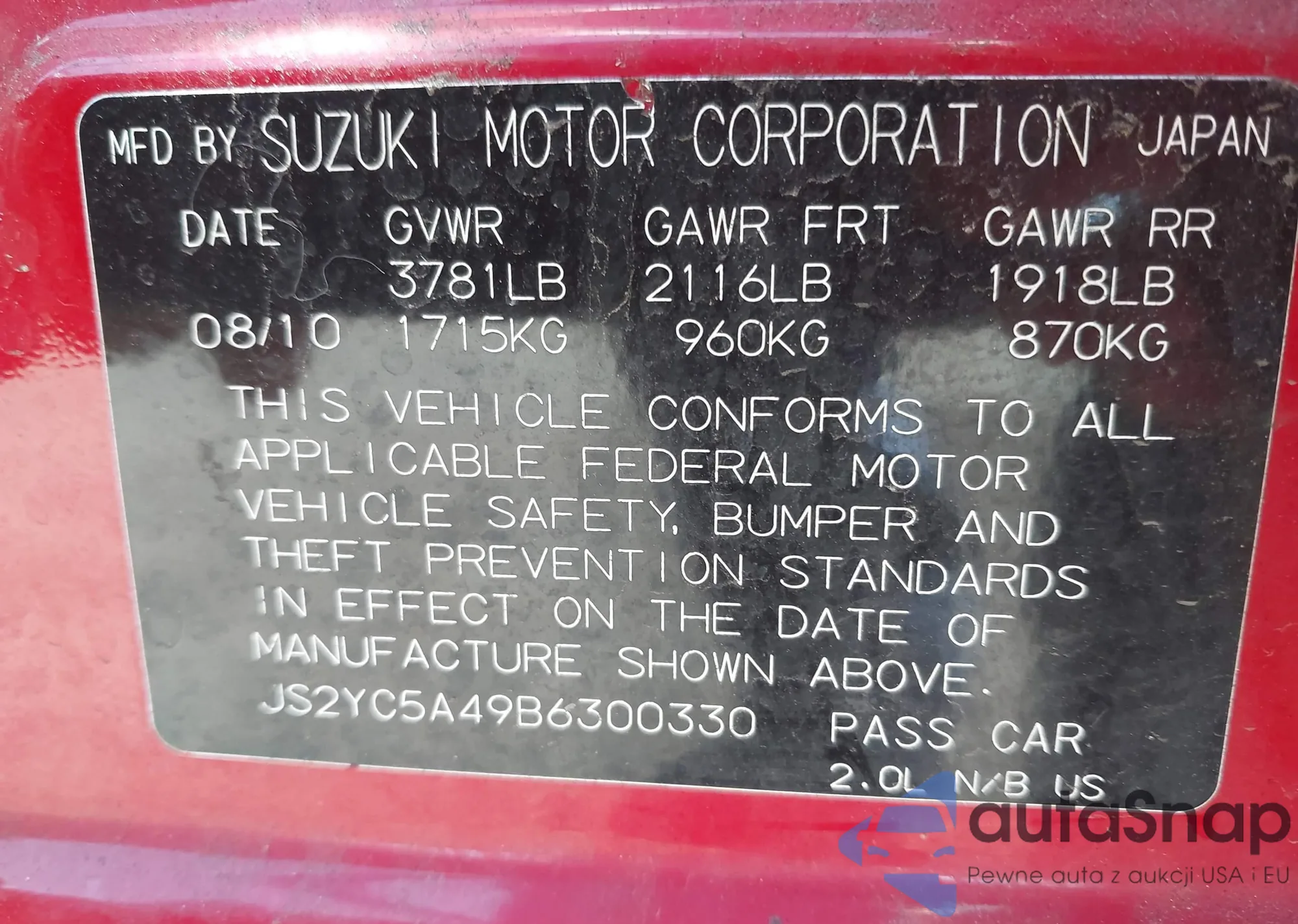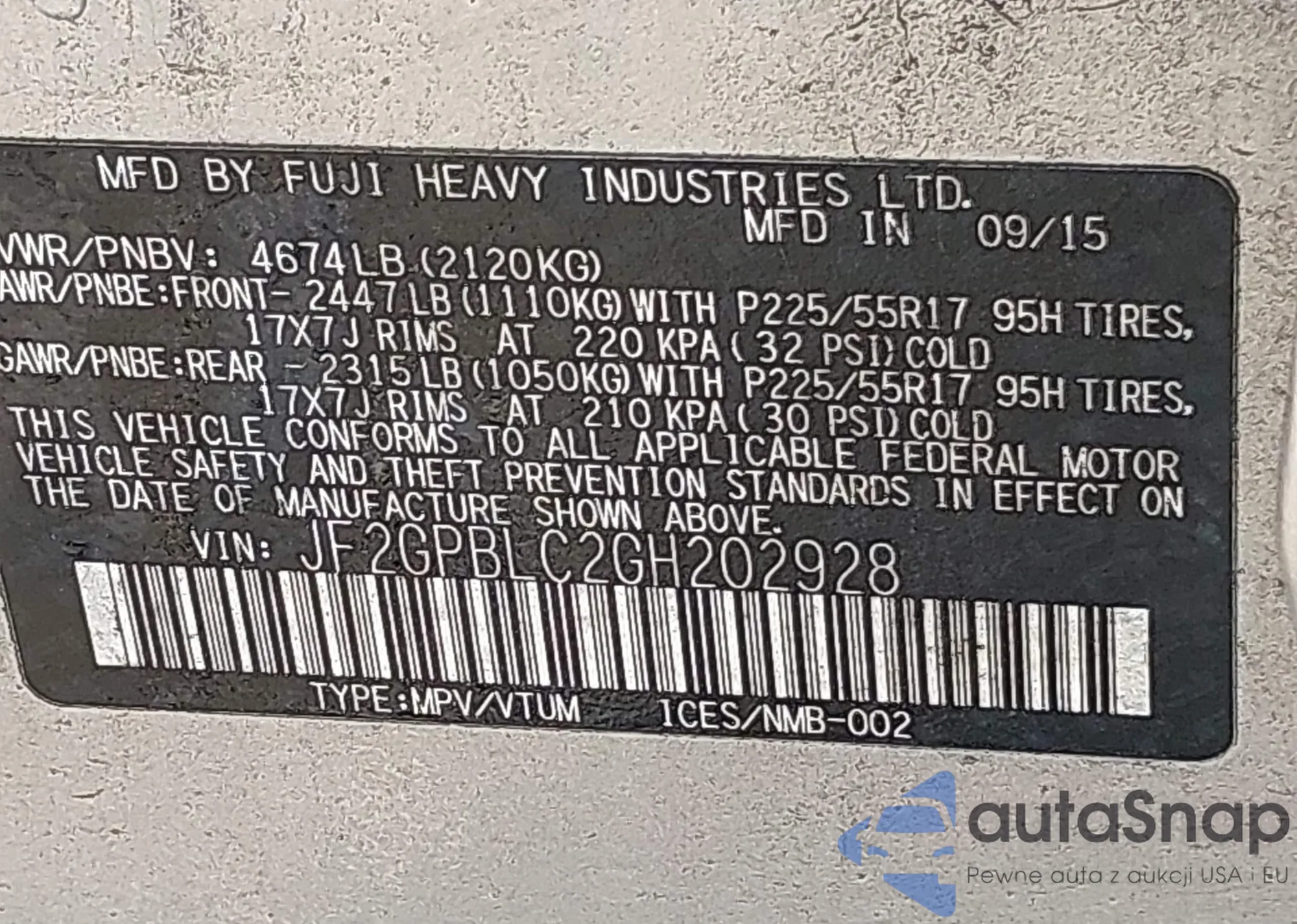 • VIN 1C4RJKAG0P8828301