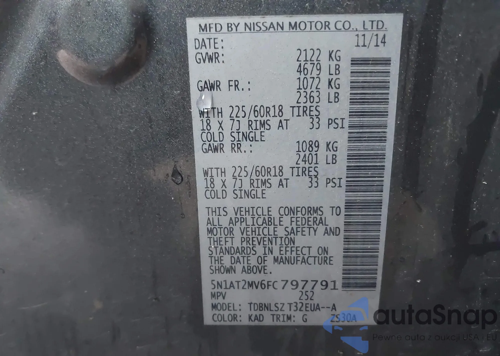 • VIN 5J6RM4H72EL017726
