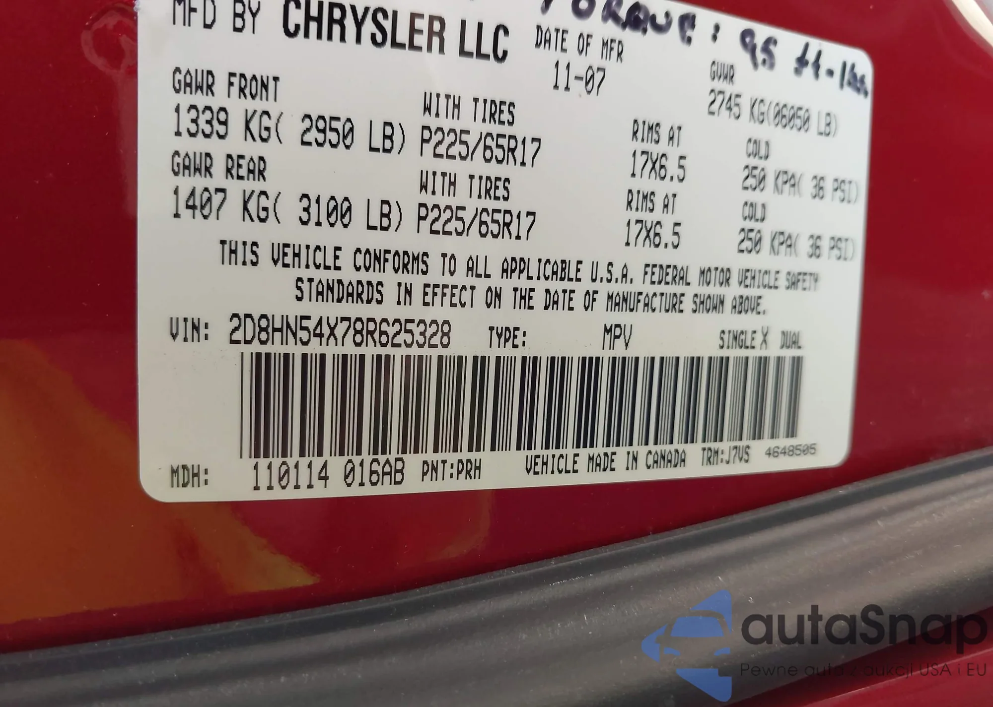 • VIN 2D8HN54X78R625328