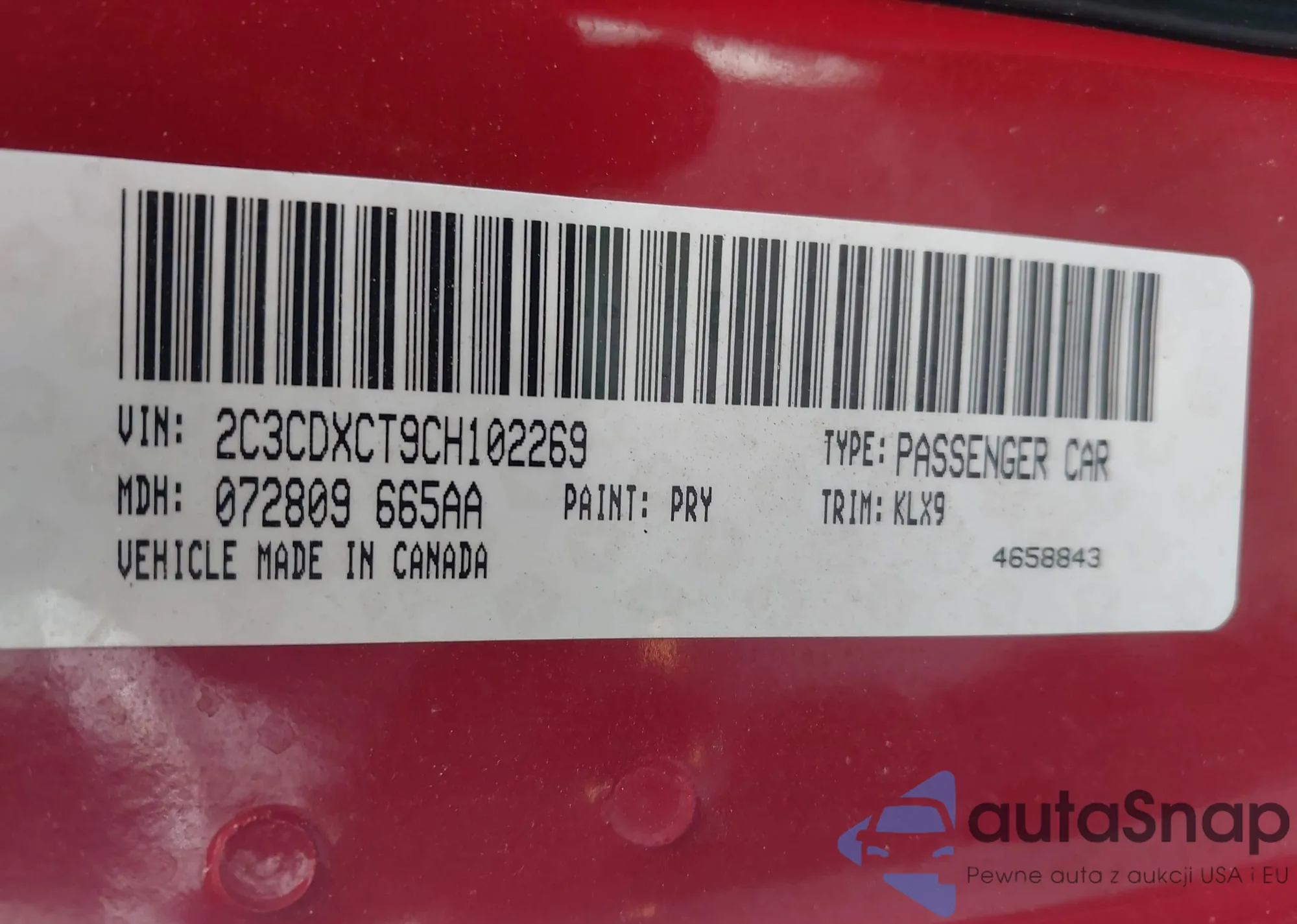 LOT: 42466558 VIN: 2C3CDXCT9CH102269
