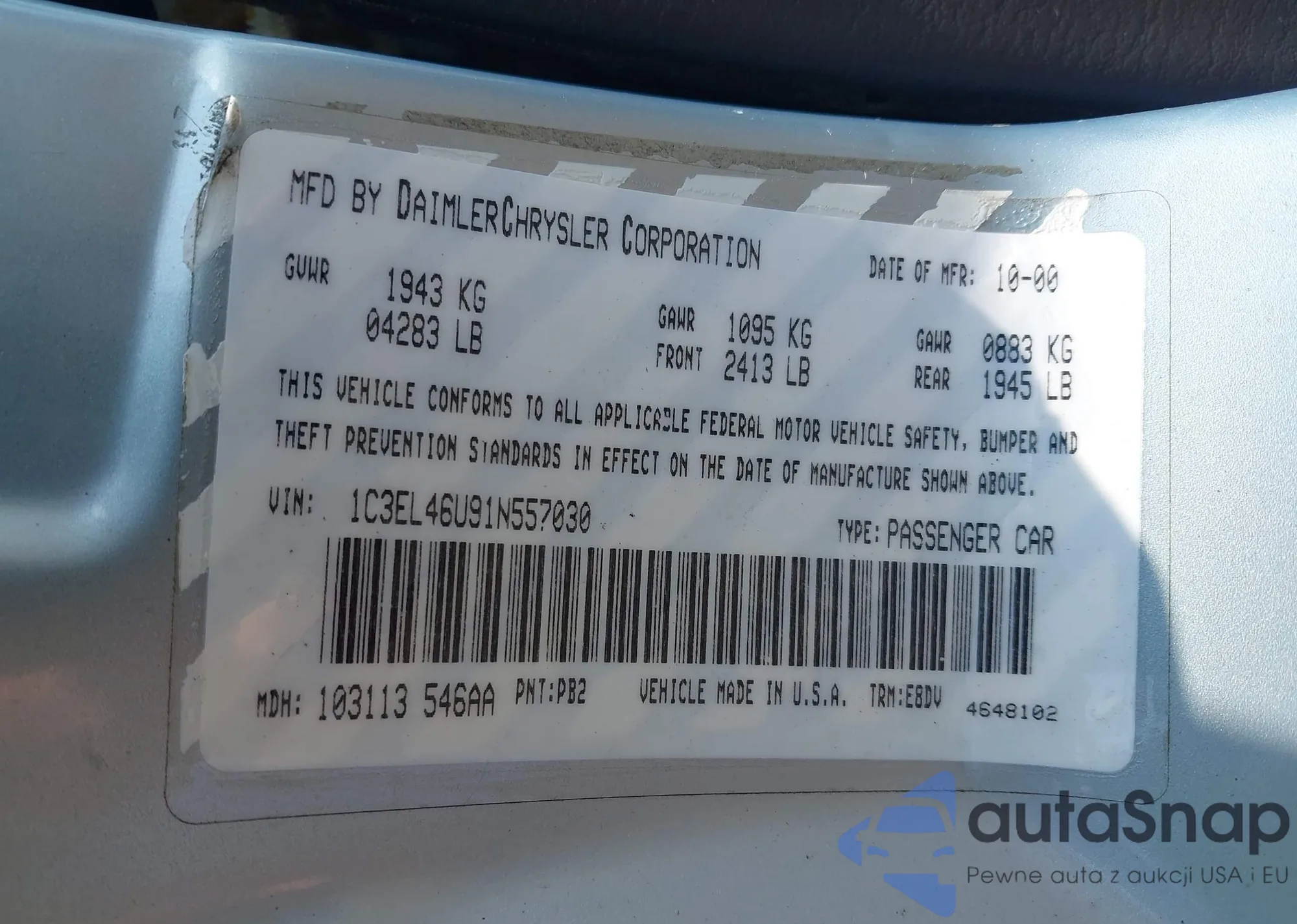 • VIN 1C3EL46U91N557030