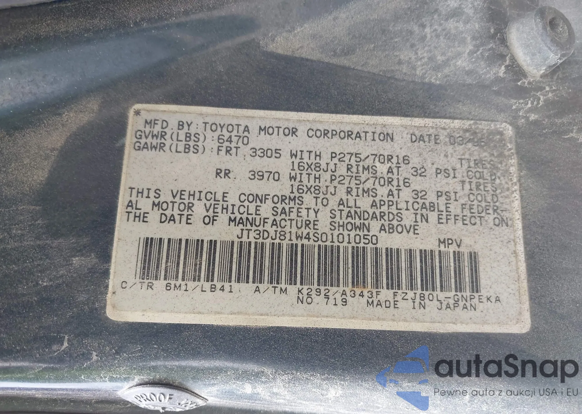 LOT: 42376830 VIN: 5TEWN72N72Z058610