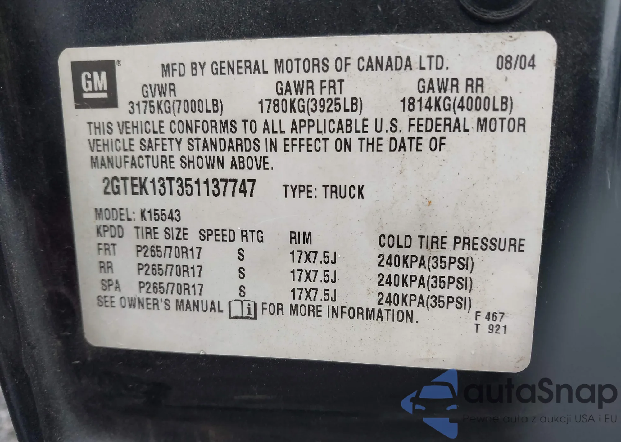 • VIN 1GC1KXE83FF681914