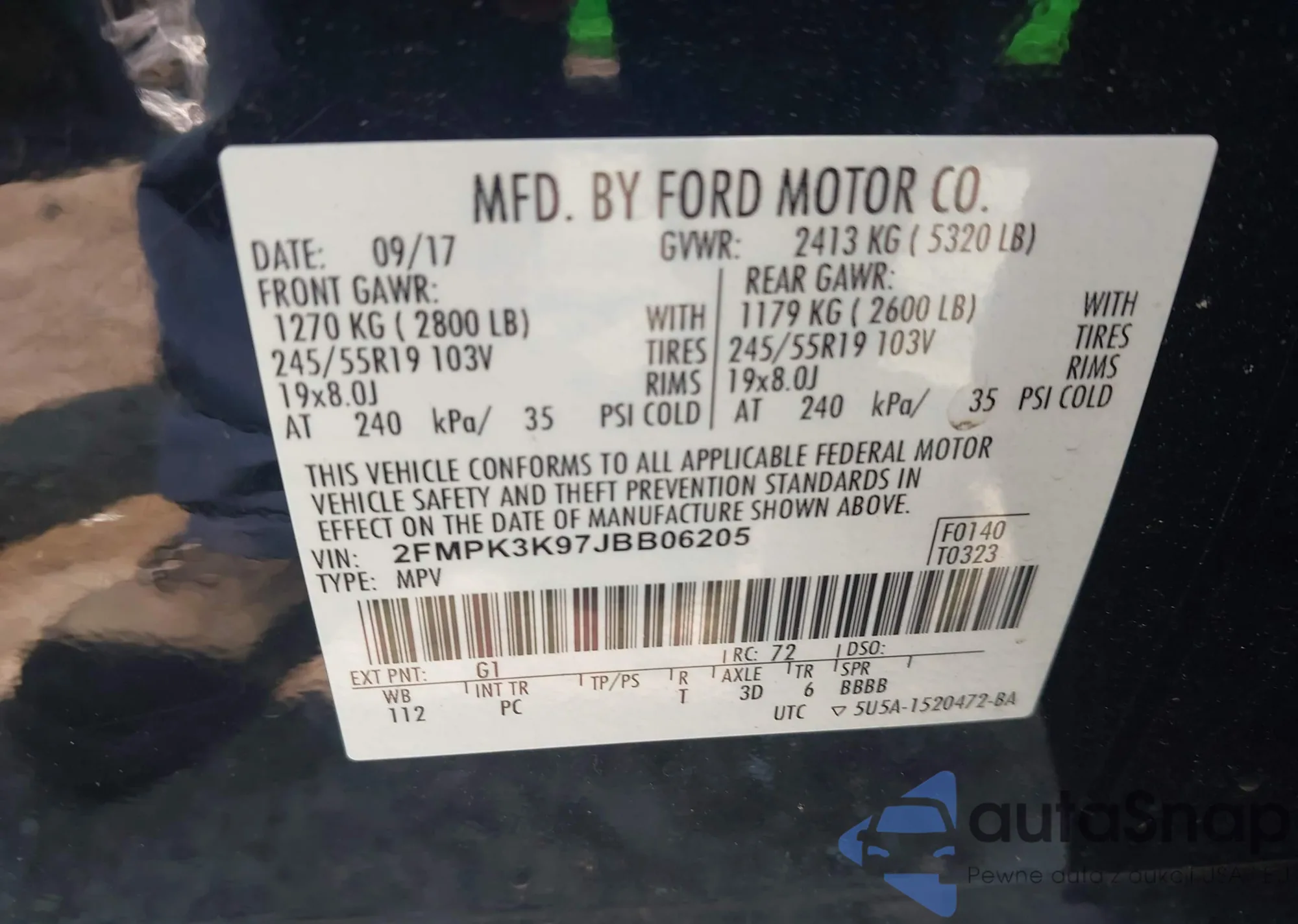 • VIN 2FMPK3K97JBB06205