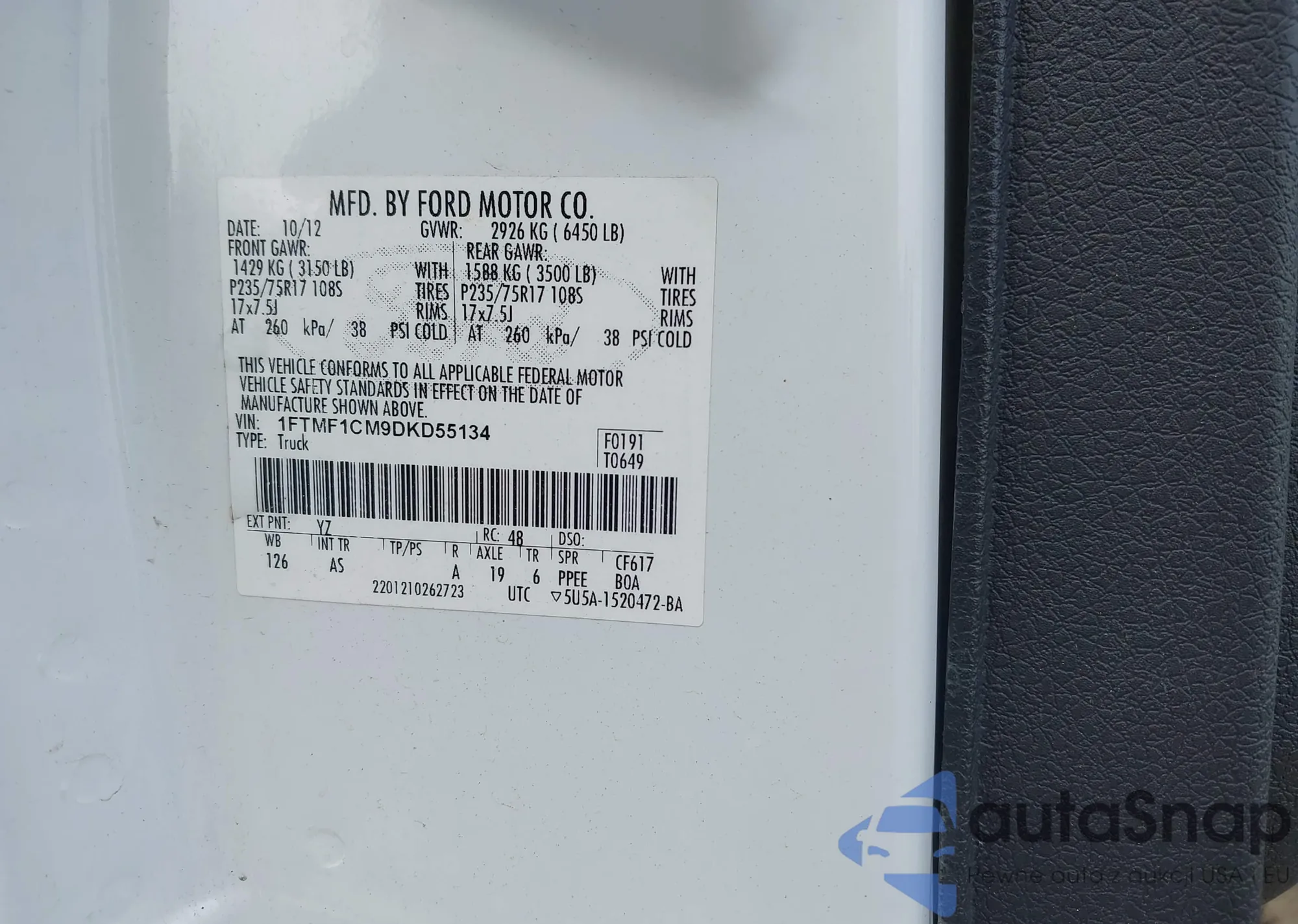 • VIN 1FTMF1CM9DKD55134