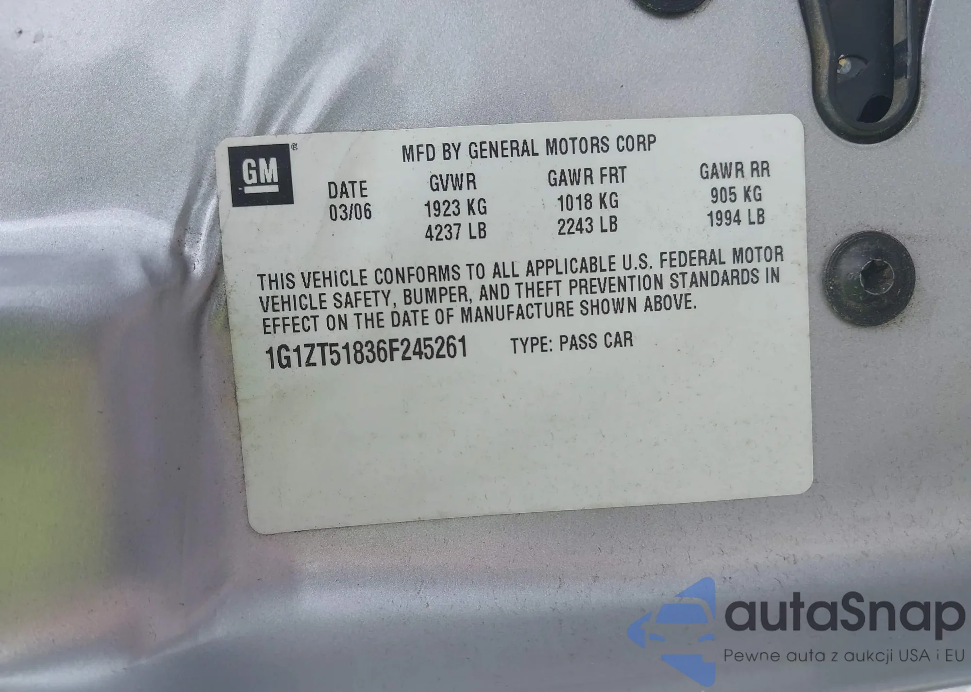 • VIN 1G1ZT51836F245261
