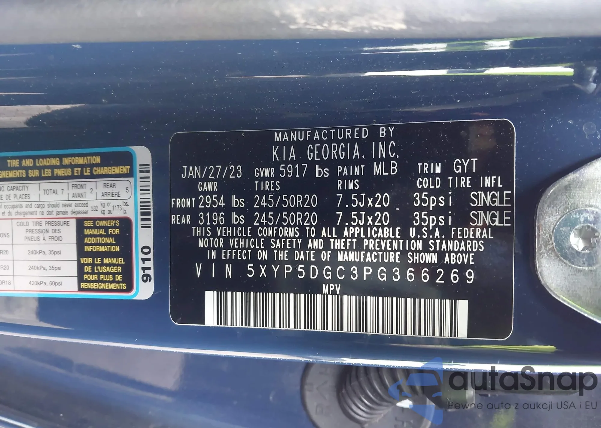 • VIN 5XYP5DGC3PG366269