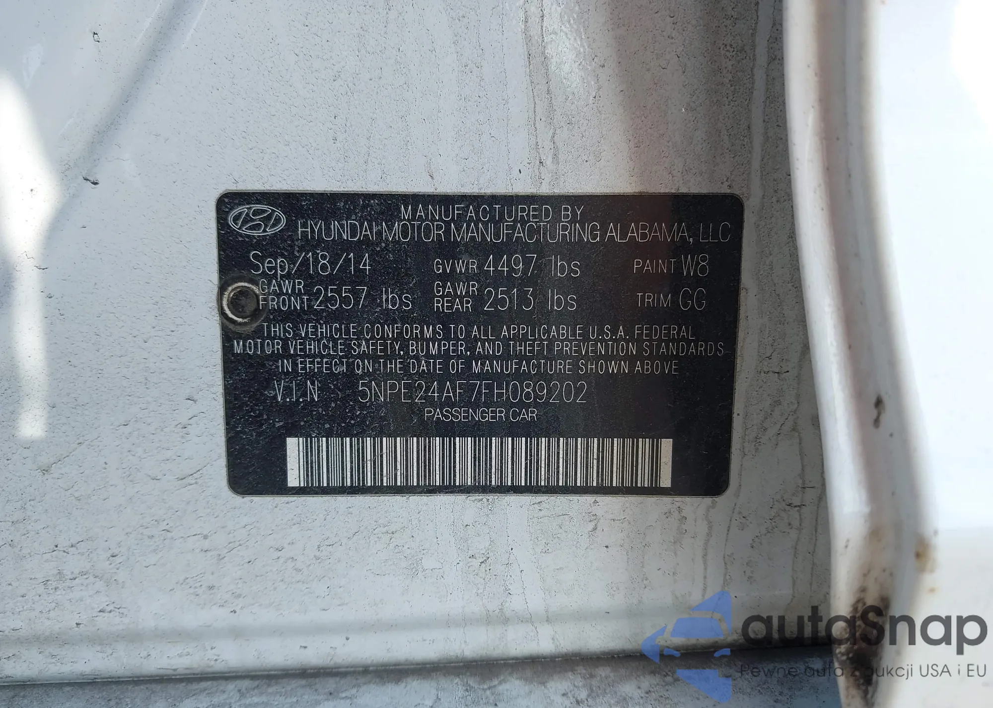 • VIN 5NPE24AF7FH089202