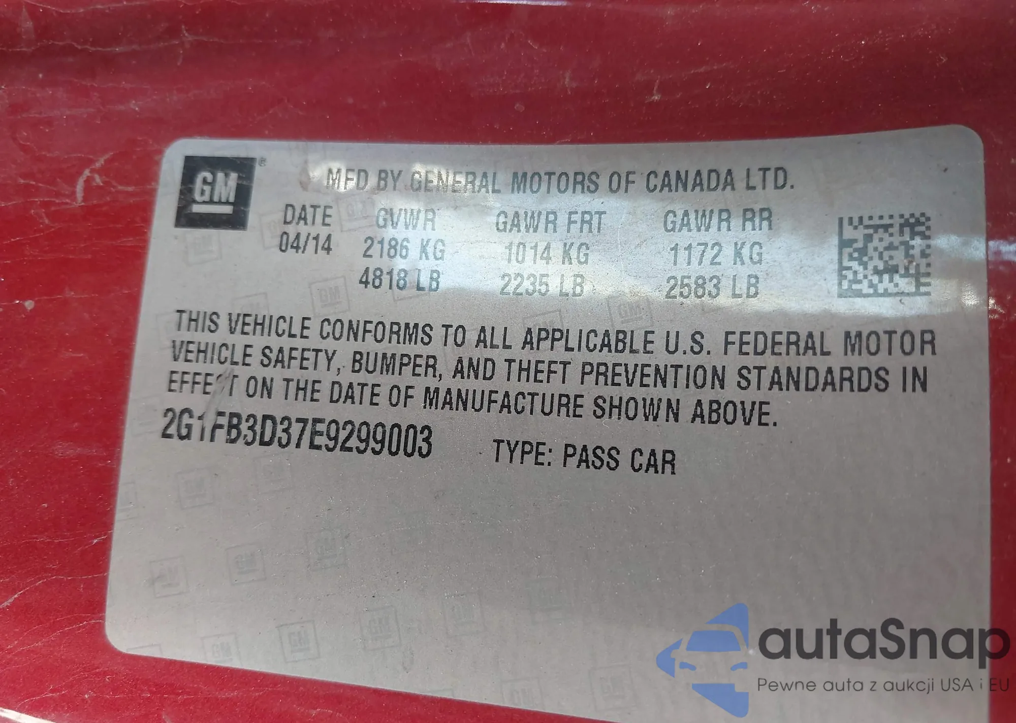 • VIN 2G1FB3D37E9299003