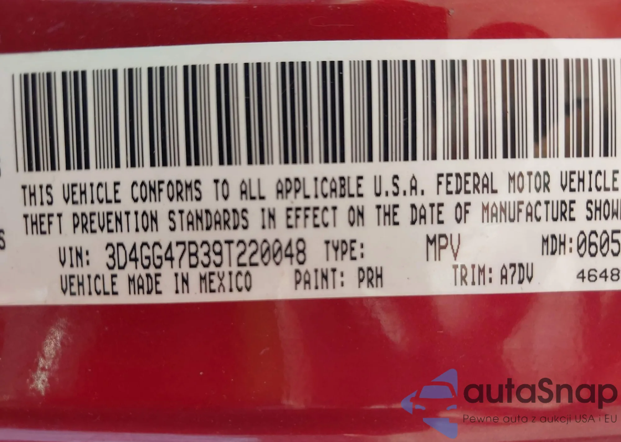 LOT: 41875371 VIN: 3D4GG47B39T220048