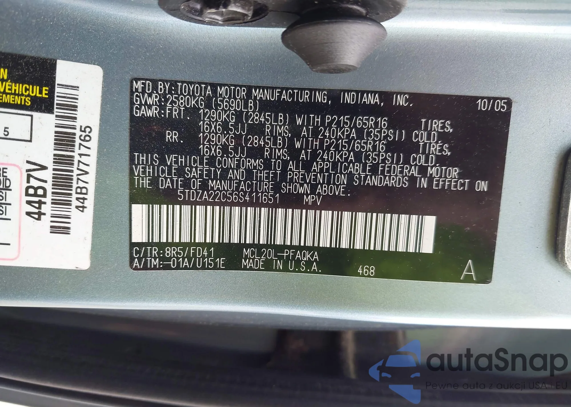 LOT: 42517108 VIN: 5TDZA22C56S411651