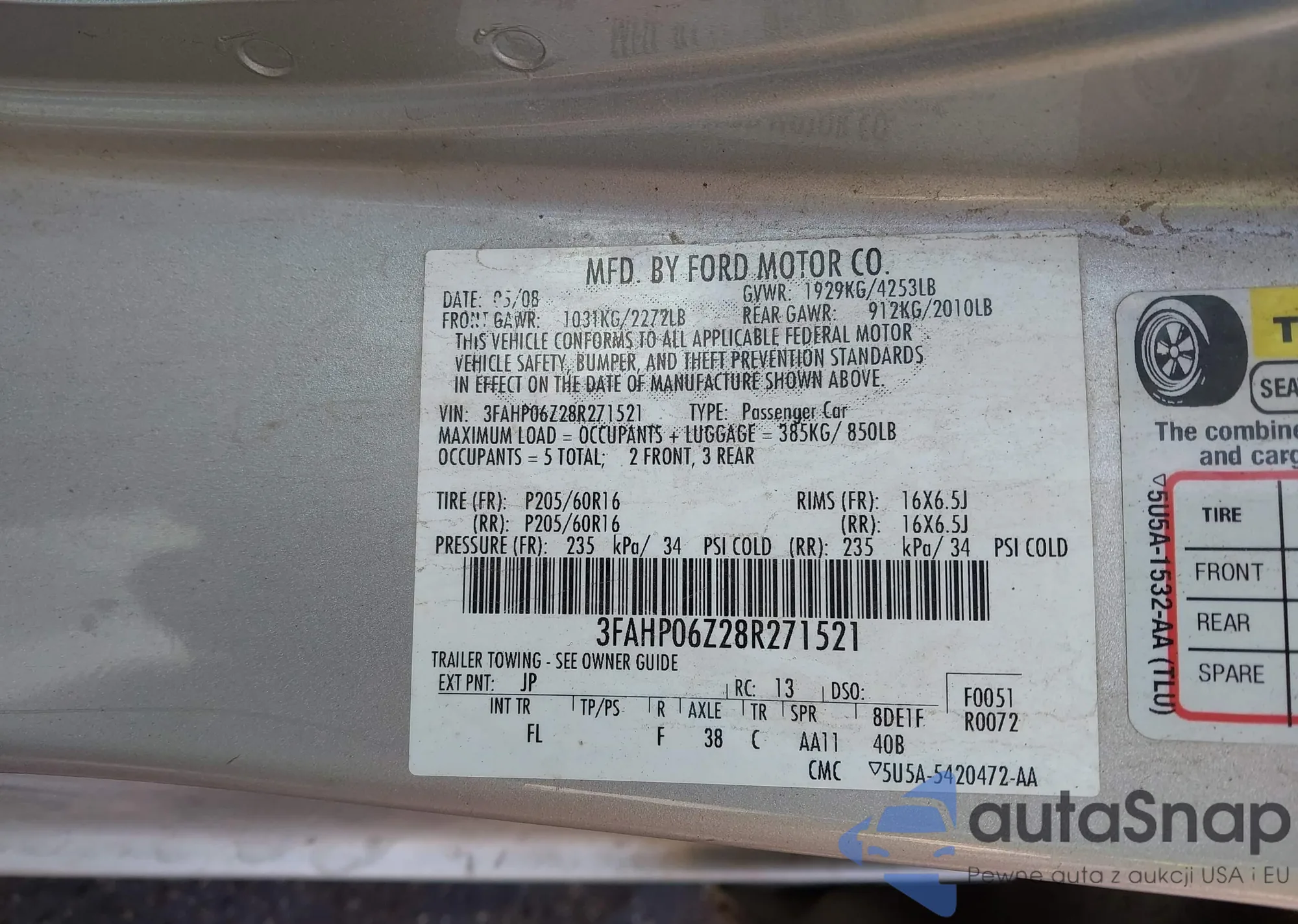 • VIN 3FAHP06Z28R271521