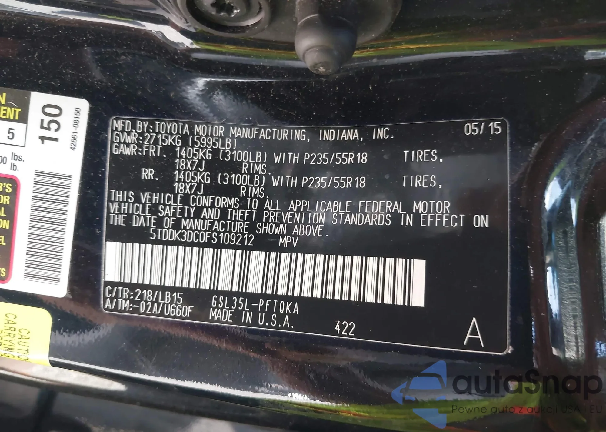 LOT: 42535985 VIN: 5TDDK3DC0FS109212