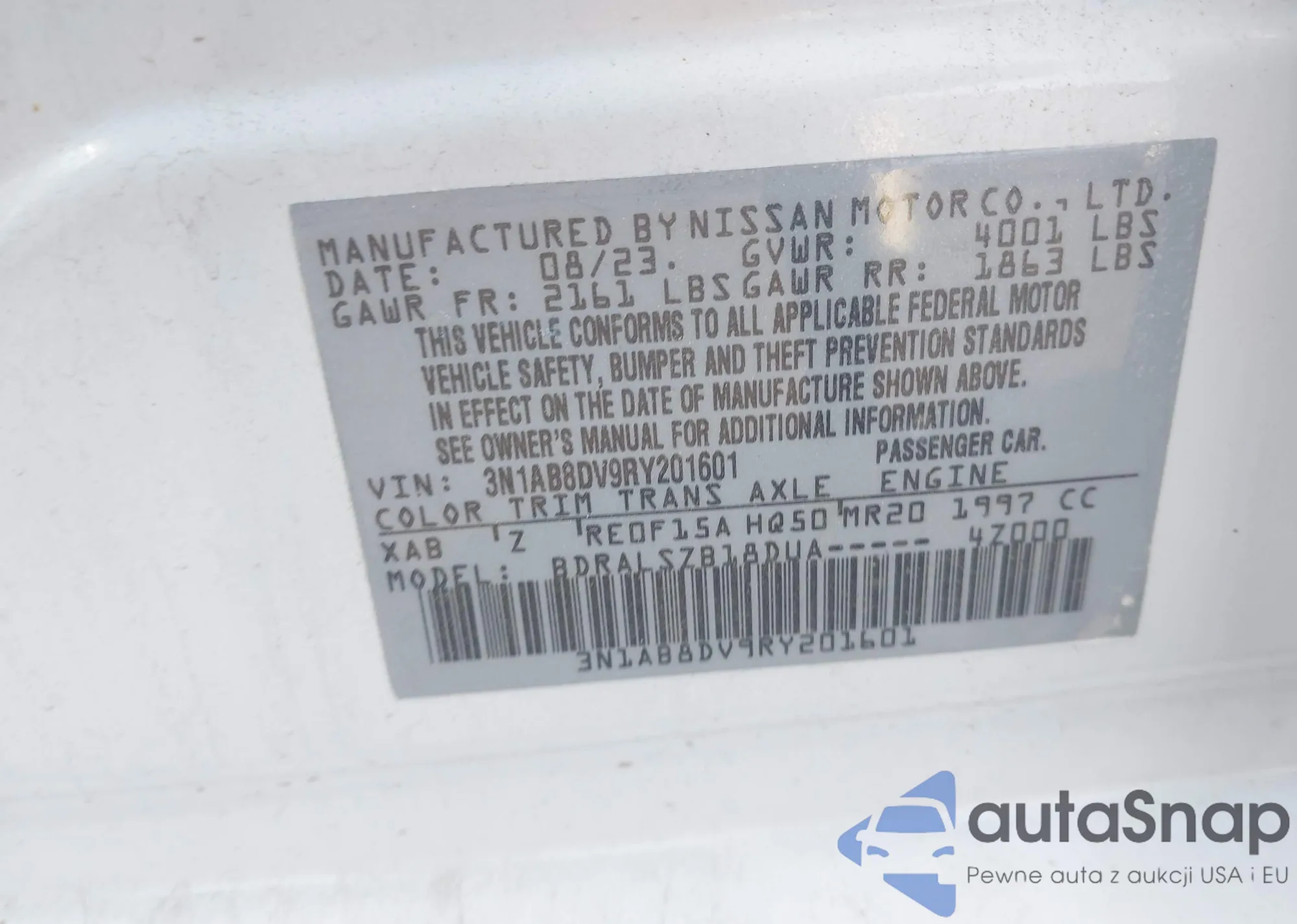 • VIN 3N1AB8DV9RY201601